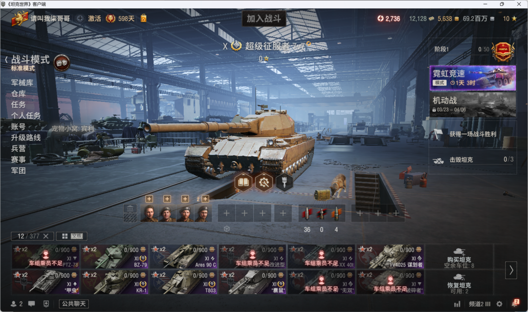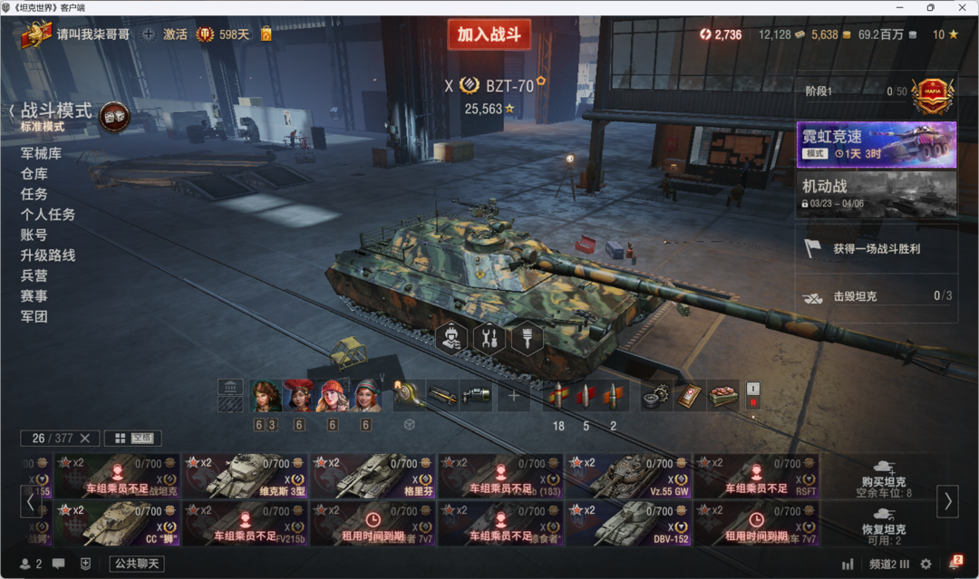 有银币,全系,12个十一级,95个十级,BZT-70,战鳄,DBV152,RSFT,麻烦不要用大补给