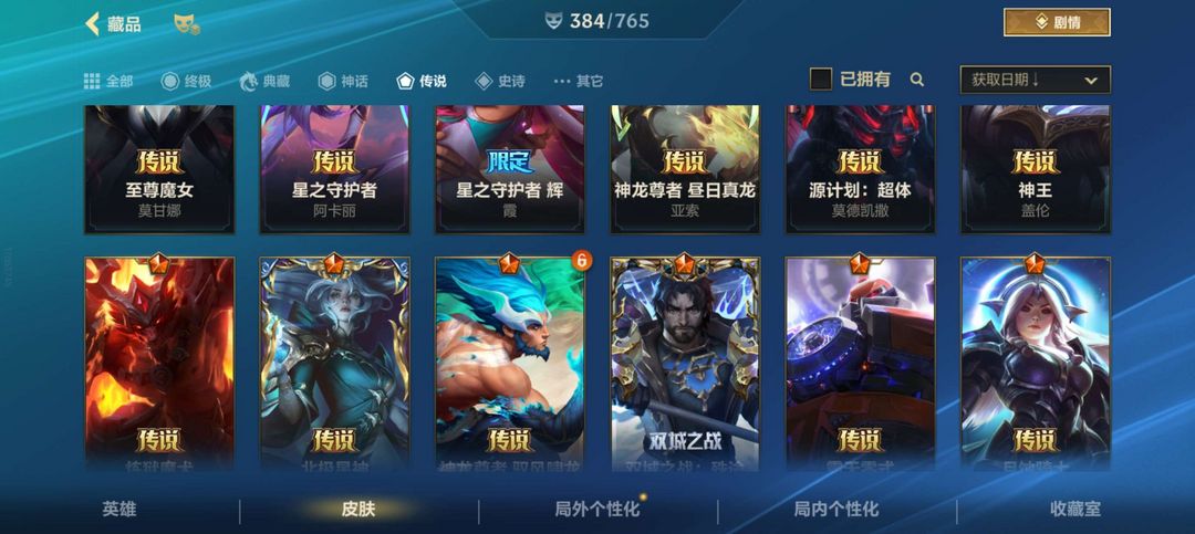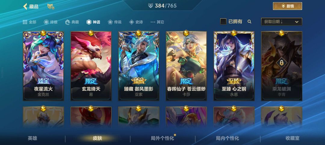 全英雄,兰亭墨韵1.0全套,春晖限定全套,心之钢至臻永恩,水晶玫瑰多个皮肤等