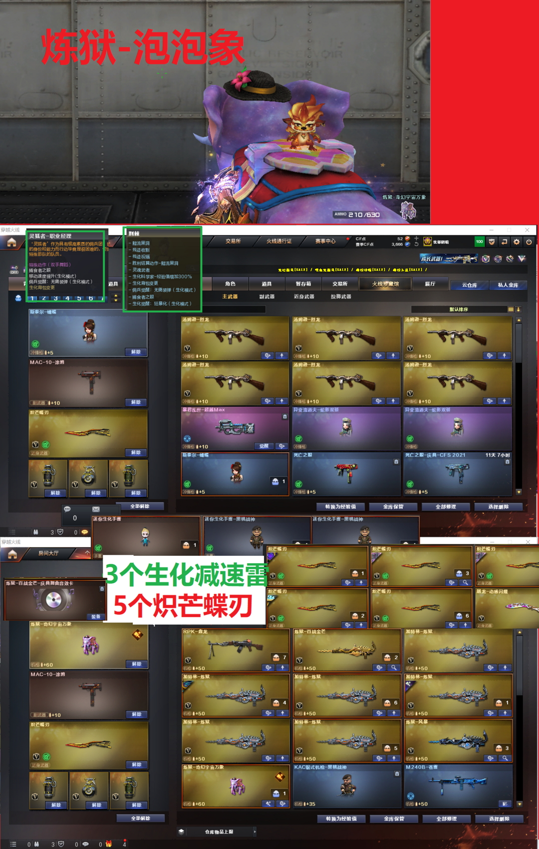 限制: 租号2次及以上 |装备描述:排位:可以、、、、生化四防极品(变更背包、可以查看生化僵尸血量):无需换弹、6烈、盘龙、6炼狱+炼狱音效卡、炼狱-泡泡象、斯泰尔蝴蝶、异变清道夫-小人枪、八面凌龙、MAC-10-涂鸦、5把炽芒蝶刃、3个生化减速雷、超级对讲机、全部弹匣、、、、、爆破四防:幻神9皮+音效(KZ冠军、电竞之星、星火小队、荣耀世冠EP、24AG冠军、23白鲨、AG、冠军之幻、动感闪耀皮肤)、98K星神、王者幻神、、、2个USP雷暴王者、柯尔特百战金芒、3个USP雷暴、17把USP冥王、3个柯尔特EP、、个COP堕天神、COP雷霆、23白鲨柯尔特、世冠柯尔特、COP雷霆王者、、、加利尔天袭、九霄圣角、传说圣谕、QBZ威猛悍鲨、FAMAS G2-天戎、G36幻影、白虎玄豹、传说光耀、白虎、王者凌虎、、、幻神音效、裁决音效、九霄圣角音效、星神音效、毁灭音效、白虎音效、雷神音效、黑龙音效、炼狱音效、火麒麟音效、黑骑士音效、、、10套玄豹、6套雷霆、4套雷暴、7套堕天神、7套夜魔、1套幻灵、2套雷暴王者、、、生化四防(神威莲荆棘、职业经理)、爆破四防(传说女帝、传说星骇、妮妮、王者春、王者貂蝉、王者闭月羞花、王者小乔)