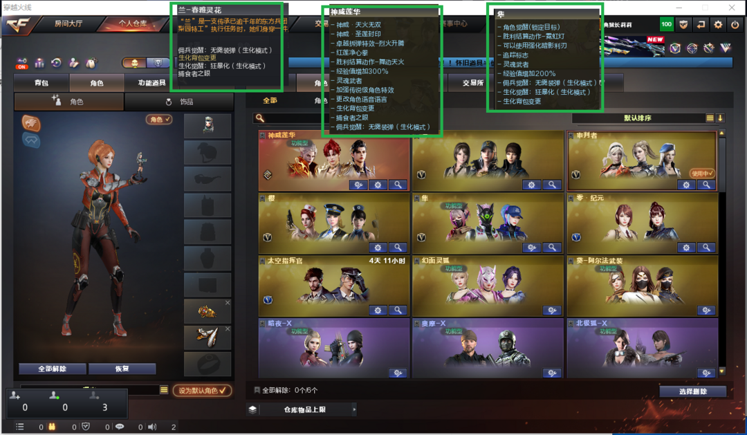 装备描述:排位:可以----------------生化四防全装(生化背包、可以查看生化僵尸血量)无需换弹、6烈、4盘龙、1炼狱、炼狱-酷酷小狮、VPER-12-宙斯、异变清道夫-小人枪、双面神、炼狱小钢、死亡之眼、MAC-涂鸦、2把炽芒蝶刃、2个生化减速雷、超级对讲机、生化常用弹匣、、、、、、、、、爆破全装:98K星神-长生圣莲、玄豹左轮、王者凌虎、、、炼狱音效、、、生化四防(神威莲华、隼、兰-春雅灵花)