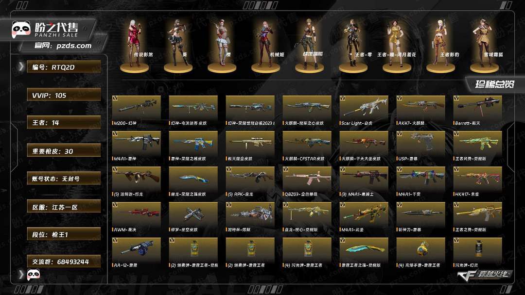 装备描述:>>>>>>毁号,涉及毁坏虚拟财产罪及计算机安全罪,请文明游戏素质游戏,让我们共建美好租号平台>>>>>> 本游戏账号:英雄武器81个; 王者武器19个。 装备齐全拥有完美游戏体验。重要的是,特殊装备有:M4A1-黑骑士、AK47-黑武士、麒麟刺、AK47-火麒麟、AWM-天龙、Barrett-毁灭、加特林-炼狱、M4A1-雷神、M4A1-黑龙、QBZ03-金色蔷薇、AA-12-雷霆、HK417-朱雀、Scar Light-白虎、M200-幻神、USP-雷暴、王者影豹、圣诞潘多拉-X、王者-零、生化弹匣、M4A1-黑骑士音效卡、M200-幻神音效卡、QBZ03-金色蔷薇音效卡、Scar Light-白虎音效卡、HK417-朱雀音效卡等,随意畅选。 注意事项: A.游戏过程中请不要恶意挂机或者不文明发言 B.恶意挂机、顶号等行为将被拉黑无法再次下单 C.进入游戏后中途请勿退出登陆,否则无法再次上号 D.部分账号由于异地登录可能会出现密码错误提示,通常再尝试5-6次后可上号 |||||喜欢本账号请点 ☆收藏☆ 方便下次租用,谢谢光临惠顾