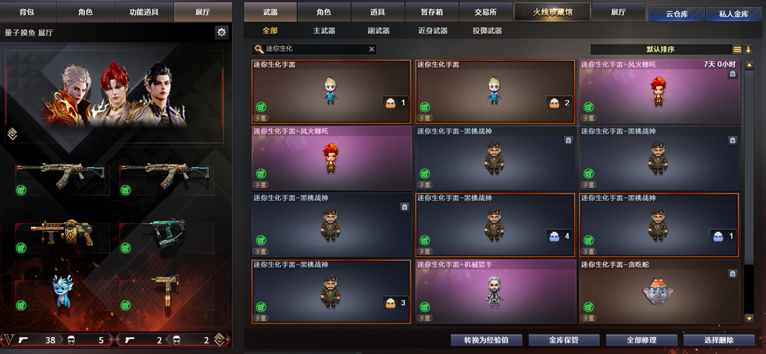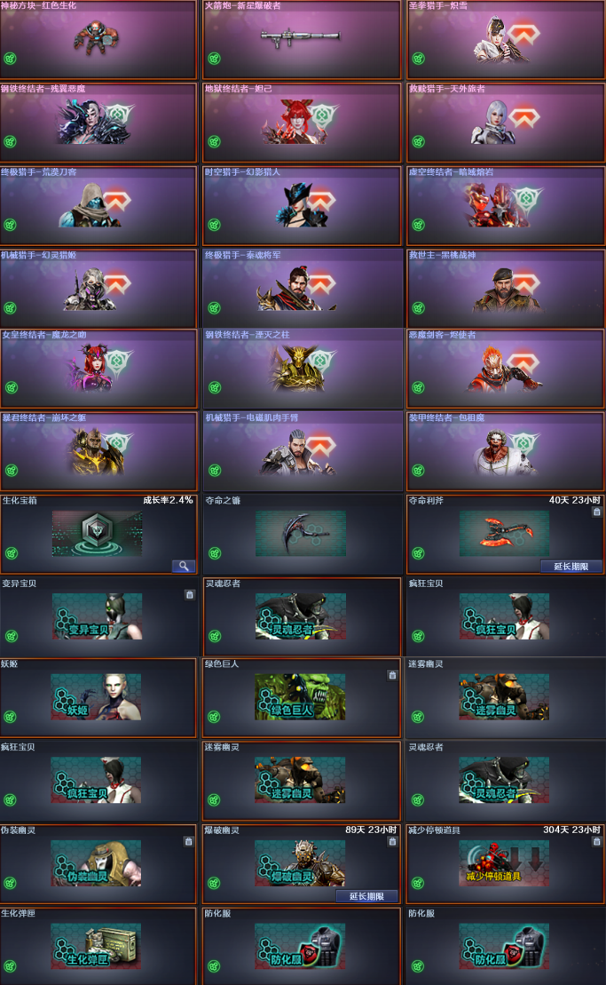 限制: 租号6次及以上 |装备描述:文明游戏,请勿使用任何外挂、鼠标宏。充值流水大,开挂封号涉嫌故意毁坏财物罪,依法报案查处。此号北部生化已无敌,满生化角色,满生化武器,满生化皮肤。两把宙斯,镇魔者不退包300多天,减速雷12个。以下角色四防:神威莲华、虹儿、影煞、荆棘、毒奎。生化皮肤出过的全有,生化天赋自己搭配都是全的,生化幽灵都是全的有伪装幽灵,所有弹夹都是几百天。泡泡象已经赋予相当于两个,金狮子所有狮子里颜值最高。无论是30人乱斗还是16人生化亦或是16人救世主此号均能满足你的需求。祝玩家游戏开心,请玩家不要毁号。好是互相的,请不要触犯法律,正常游戏不会有任何问题。—————仅以此号致我们逝去的青春!哪吒手雷和自爆幽灵已更新。