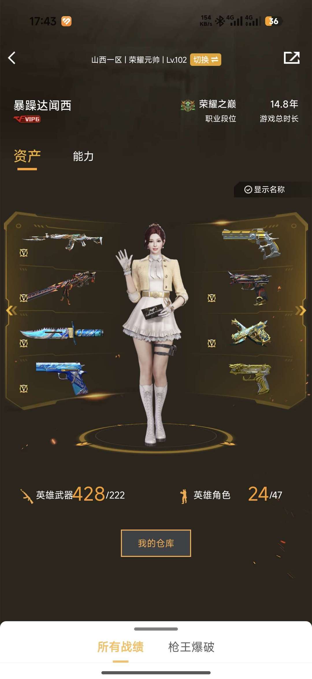 限制: 租号1次及以上 | 撤单率<50%才可租用此帐号装备描述:游戏充值已超28万+,毁号追究法律责任,赔偿的时候别说没用的话 S5,S4赛事全套玄豹7套荆棘usp冥王星神龙啸暗钢王者雷暴套圣谕星骇星神璀璨法玛斯幽瞳裁决幻神音效卡 恶意外挂程序导致封号将进行法律赔偿!