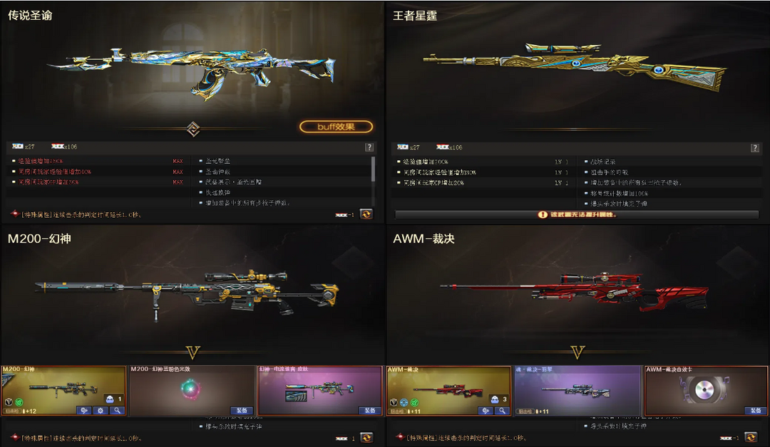 传说圣谕✨裁决+音效卡✨幻神星神QBZ蔷薇白虎蓝兔朱雀✨USP雷暴COP雷霆+王者冰锋✨魅影