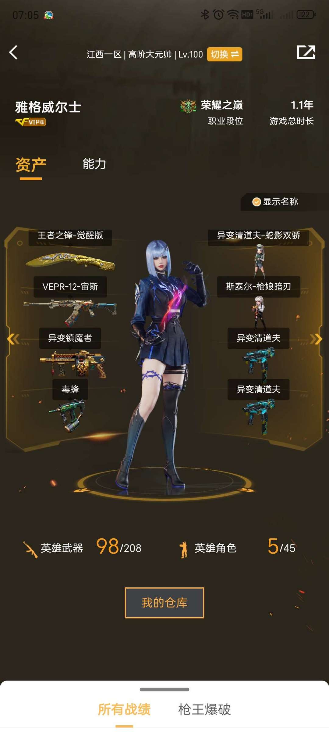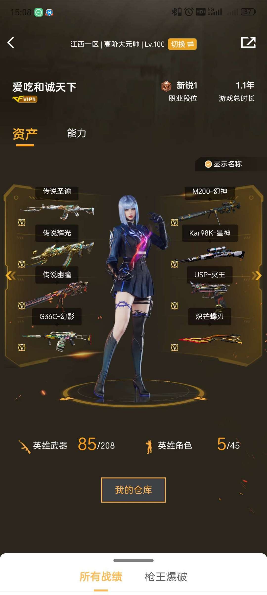 装备描述:雷神荣耀之魄qbz宠儿流光秘银末日审判等等皮肤,生化全套异变镇魔者,毒蜂双清道夫宙斯全套不退包五猎手皮炼狱音效卡四防隼云悠悠,荆棘,玄豹套装,禁止利用账号进行开挂、使用辅助违规软件诈骗等违规操作。