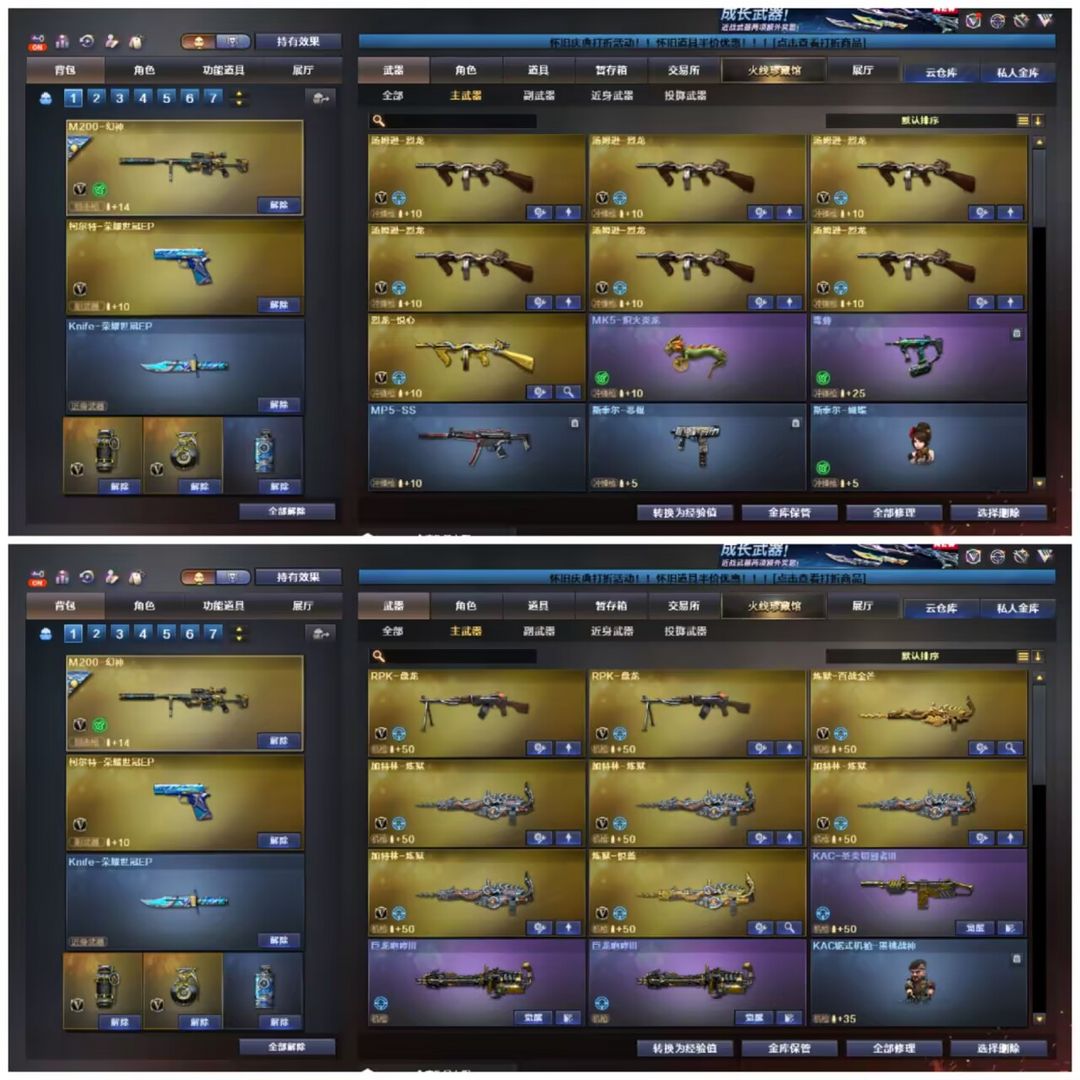 EP全套妮妮ぃ幻神5皮ぃ裁决三件套ぃ白虎蔷薇星神皮ぃG36C幻影天戎ぃ9手枪ぃ双蝴蝶刀ぃ6列6盘ぃ
