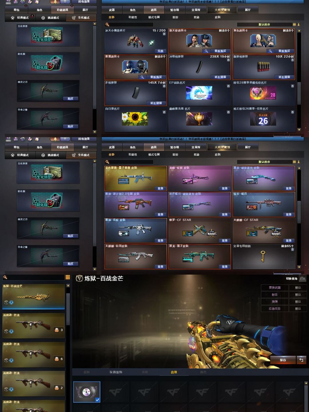 装备描述:生化号|炽芒蝶刃带皮|满级八面凌龙|4防隼生化追踪|蝴蝶毒蜂6烈|双面神幻神星神|猎手全皮肤 喜欢本账号请点 ☆收藏☆ 方便下次租用,谢谢光临惠顾!