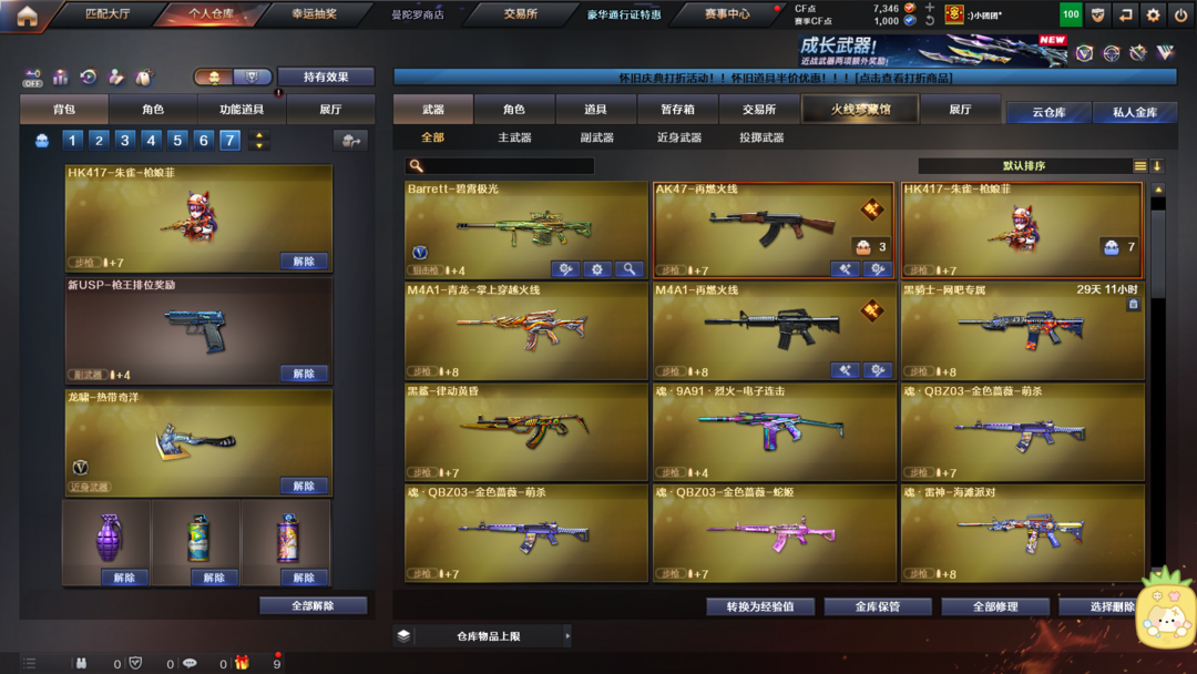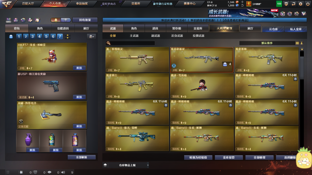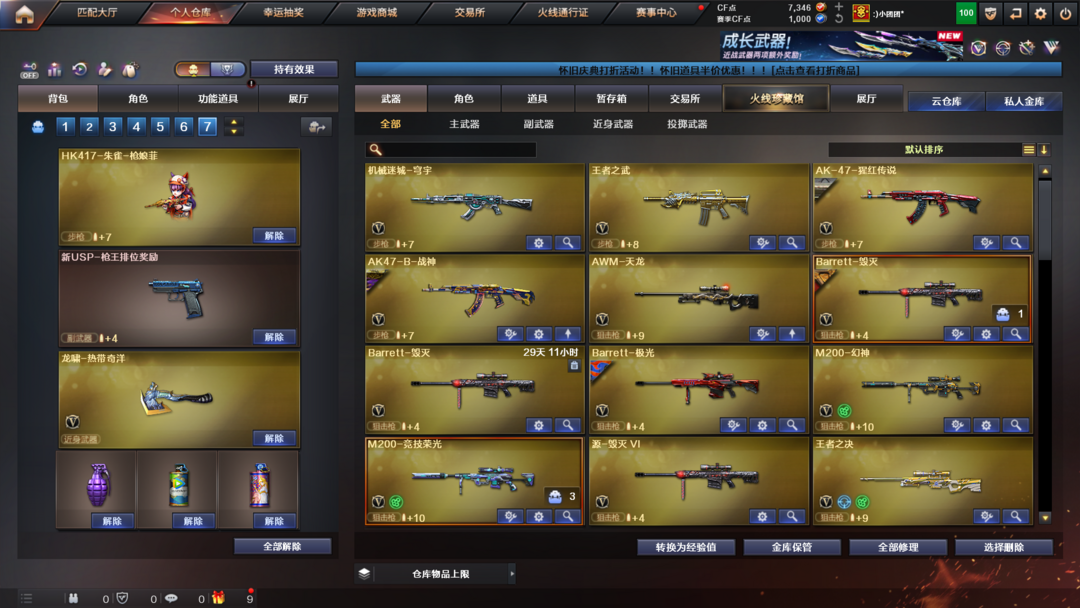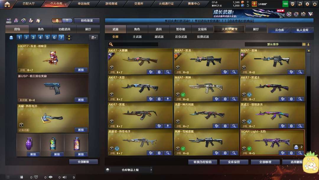 有竞技荣光一套,有玄豹全套等适合排位赛等模式。幻神M200,雷神,火麒麟手持玩偶。