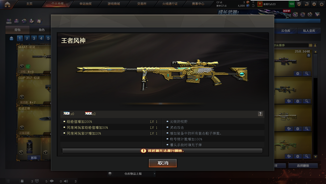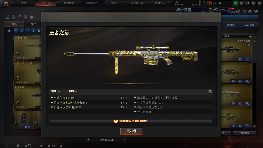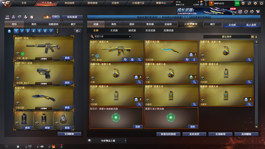 装备描述:M4A1-雷霆王者-觉醒版;高爆手雷-雷霆王者;烟雾弹-雷霆王者-觉醒版;闪光弹-雷霆王者-觉醒版;雷霆王者之锋;王者之翼-觉醒版;王者之怒-觉醒版;炫金骑士;炫金千变;M4A1-黑骑士音效卡;Barrett-极光音效卡;Barrett-毁灭音效卡