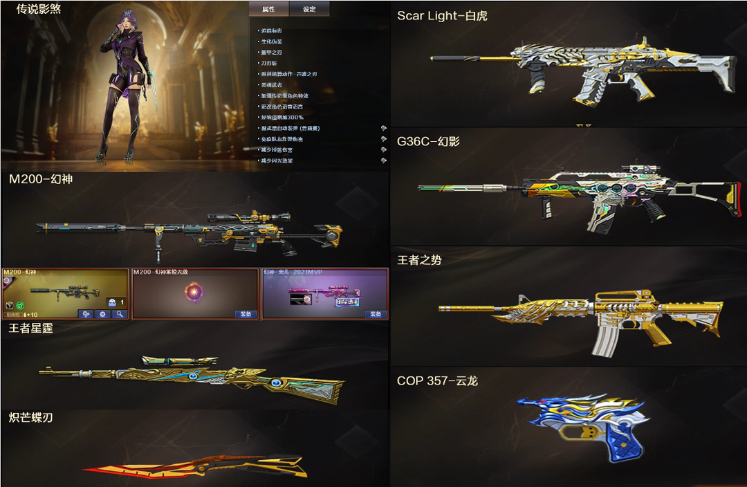 传说影煞4防❤幻神宠儿光效+王者星霆星神+百城裁决❤白虎G36C幻影+COP云龙炽芒蝶刃❤3防关小雨