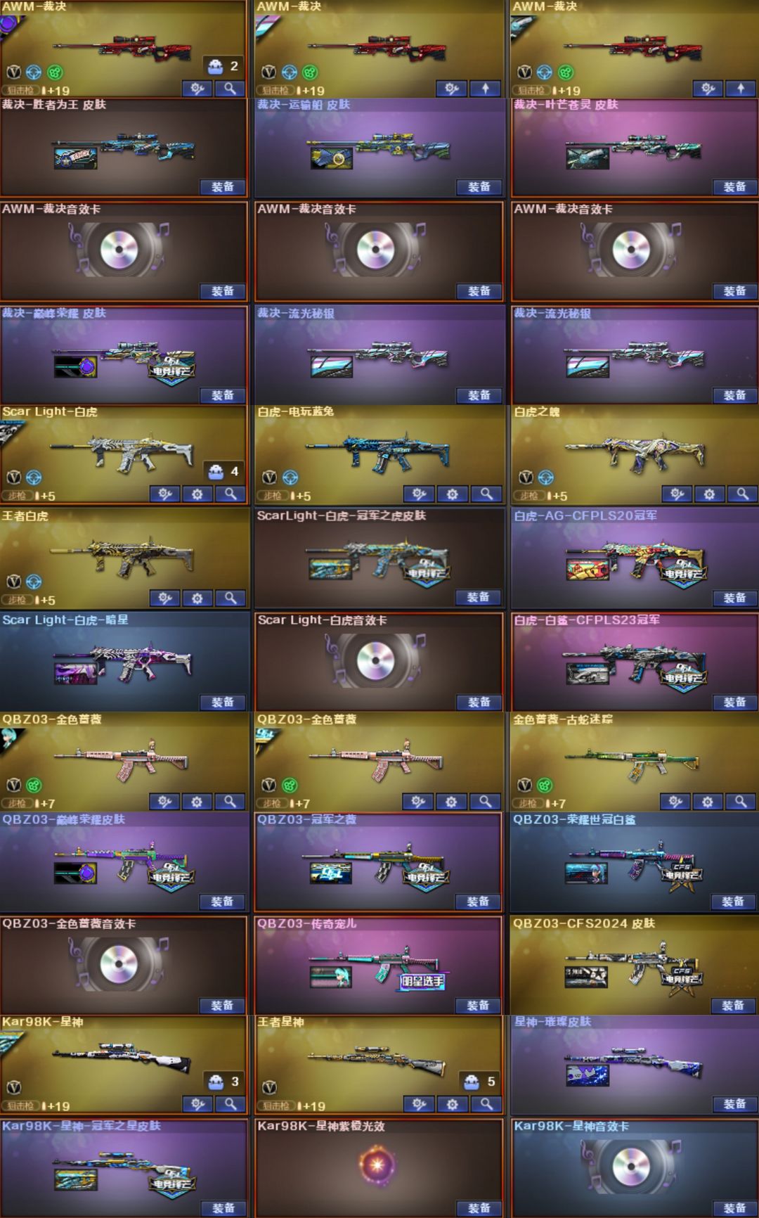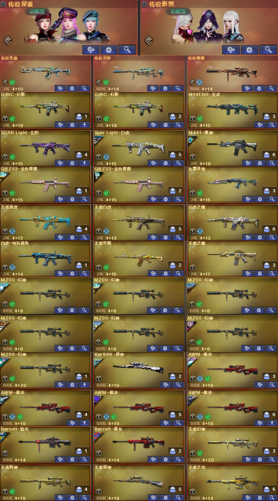 星骇幽瞳灵眸圣谕幻影5冠特⭐幻神卡EP星火12皮⭐裁决音效卡6皮⭐白虎白鲨4皮⭐QBZ冠薇宠儿5皮