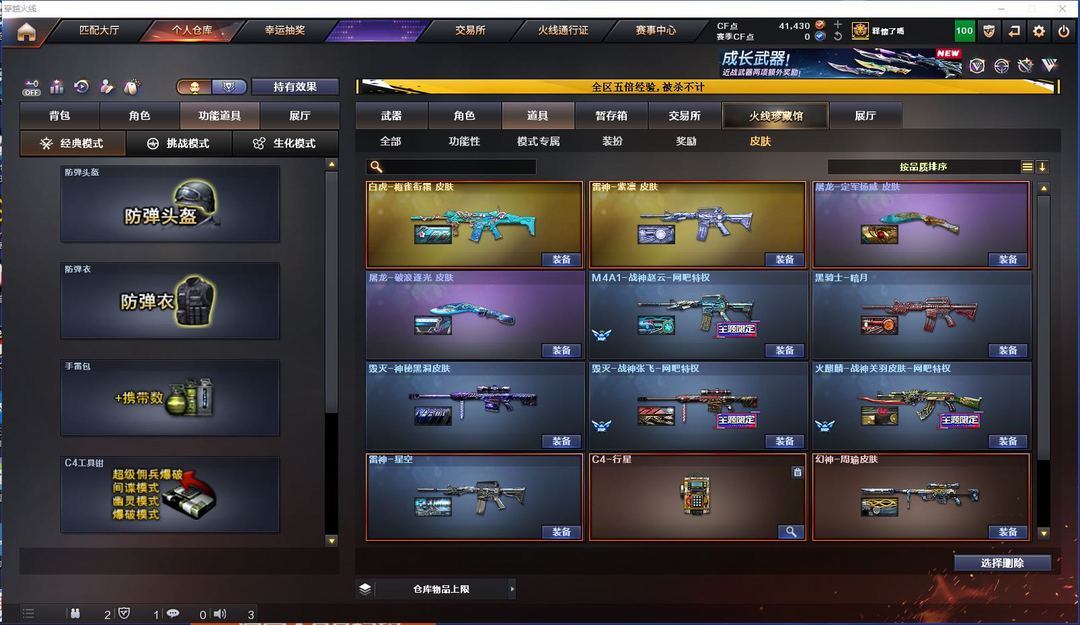 周瑜幻神,炽芒蝶刃,王者风神,白虎,炽渊之怒,usp冥王,荣耀世冠雷神,等英雄武器,枪王3可排位
