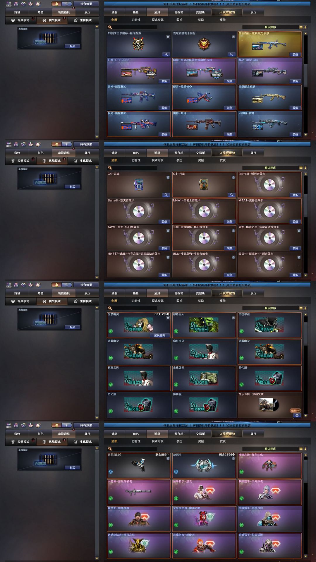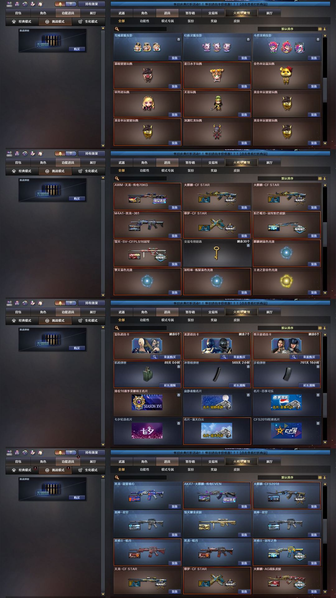 装备描述:首发炼狱蓝狮子|☢️生化号|2把蝶刃带皮|4防隼·生化增伤|蝴蝶萌兔6烈|炼狱6盘|双面神|猎手全皮 喜欢本账号请点 ☆收藏☆ 方便下次租用,谢谢光临惠顾!