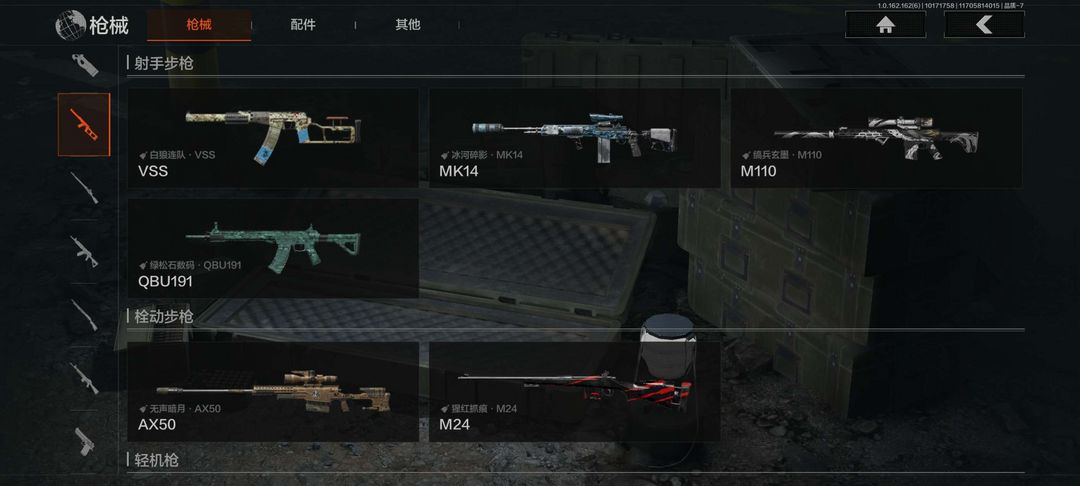 有四格基本都有枪皮,一个mk雪那个皮肤,有开珊刀。别毁号麦大金求求了科恩币随便用打手大哥手下留情