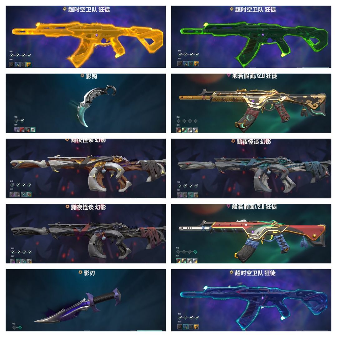 装备描述:超时空狂徒✨恶鬼狂徒✨暗夜幻影✨奇点正义✨影刃✨影勾