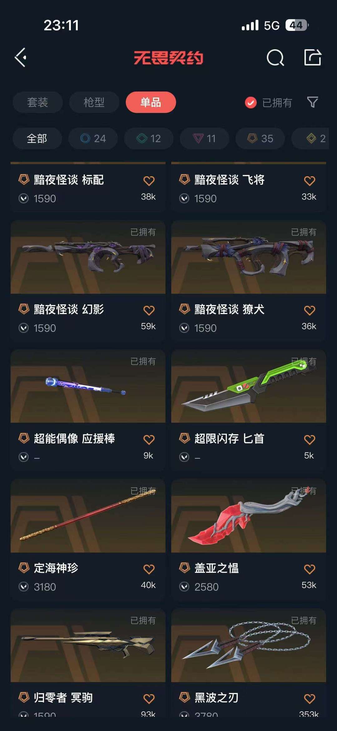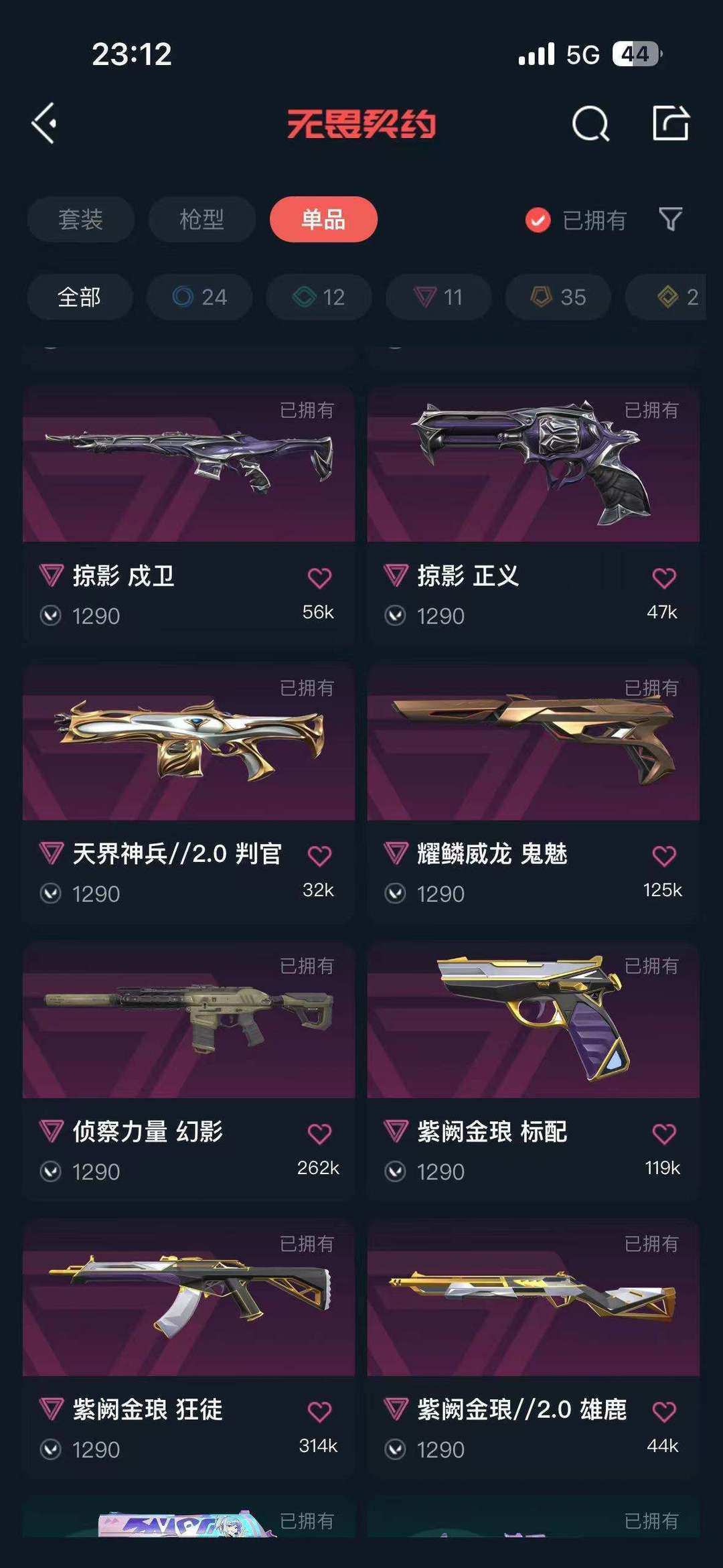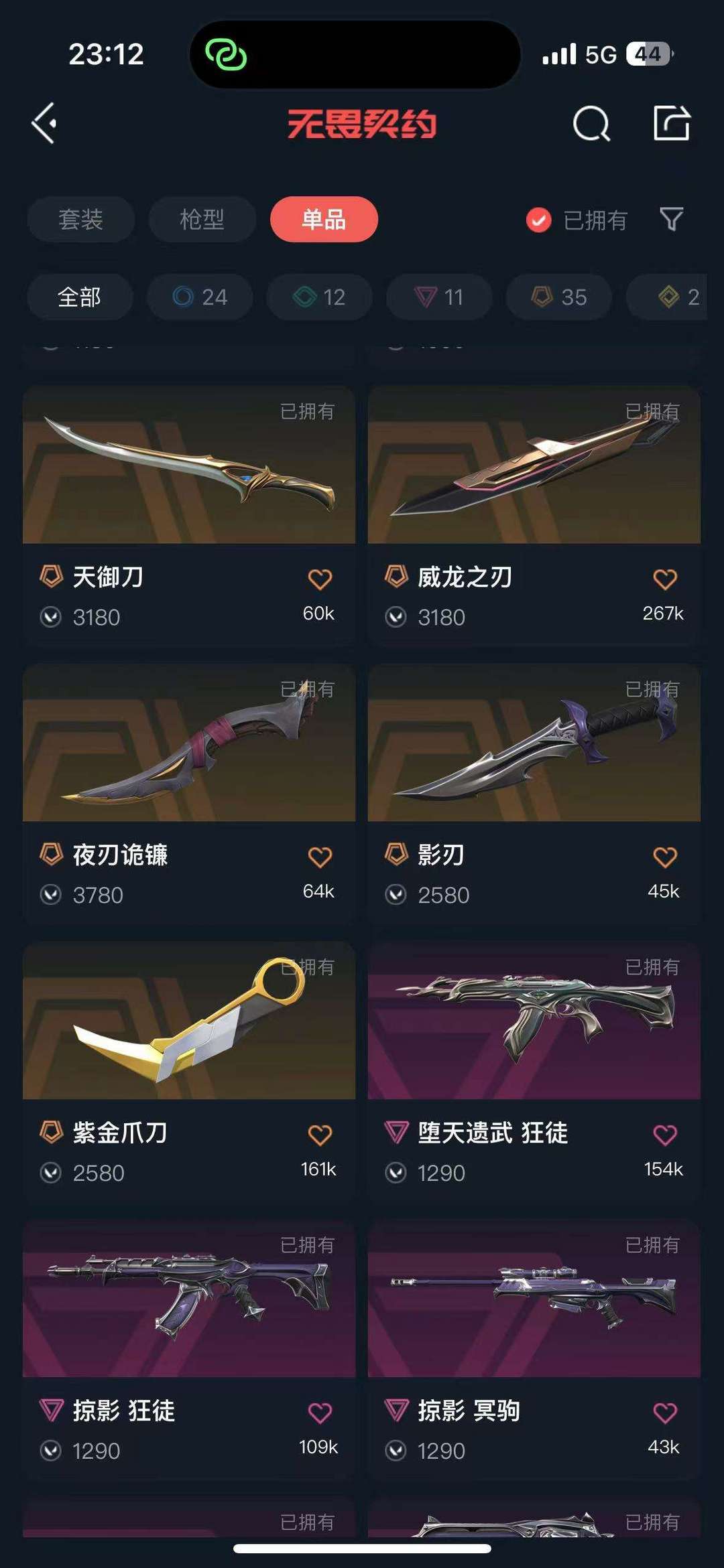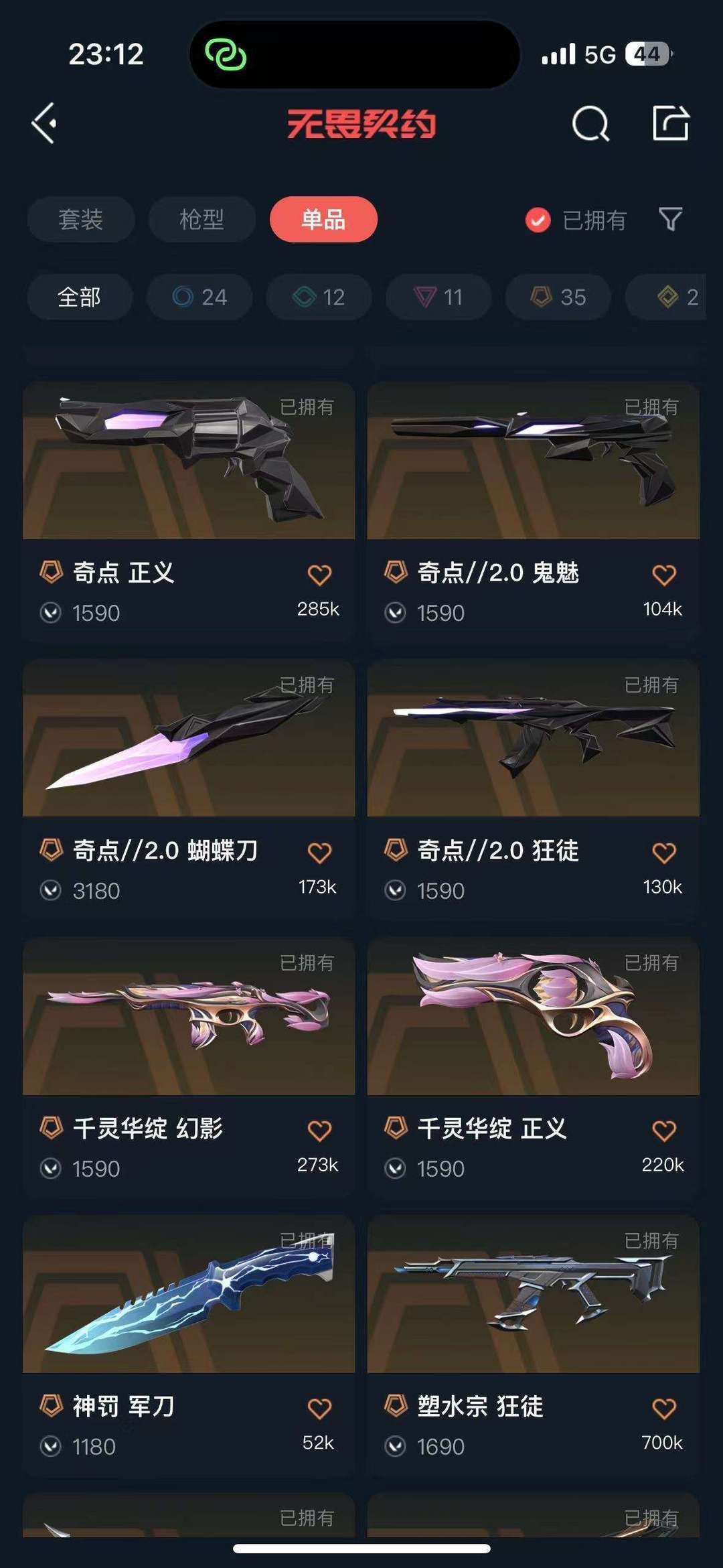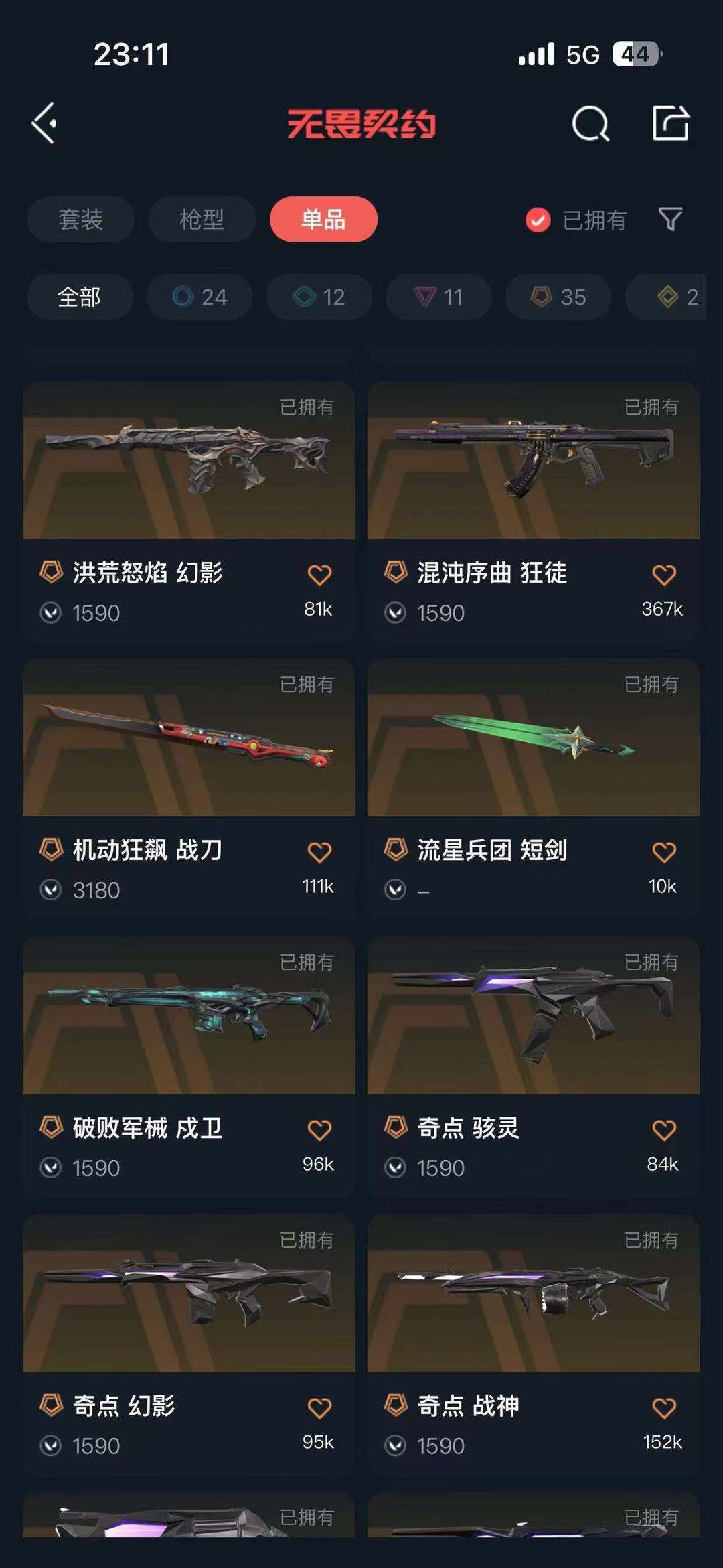 无畏契约精品号 精品刀皮和枪皮 充了大一w想玩的基本什么都有