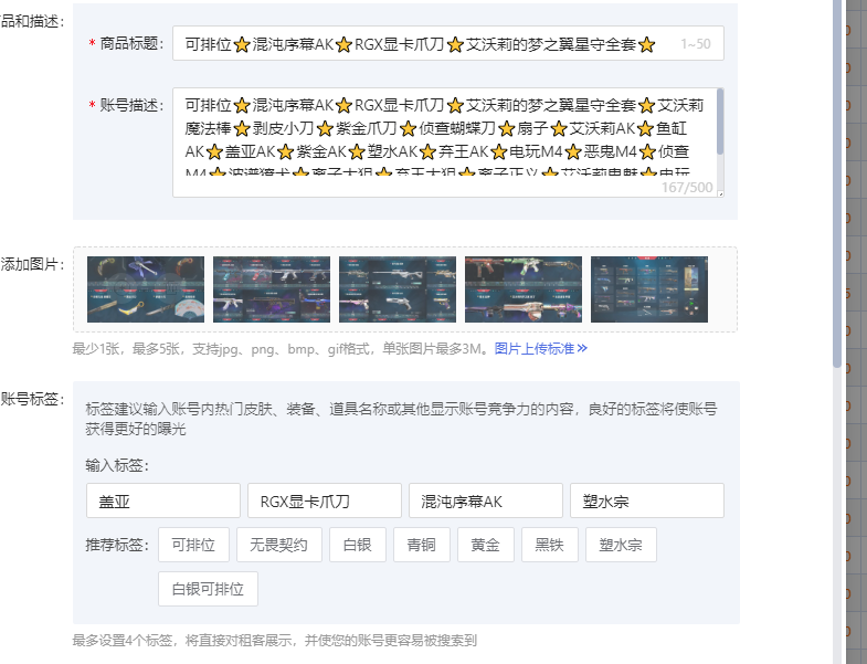 装备描述:可排位⭐混沌序幕AK⭐RGX显卡爪刀⭐艾沃莉的梦之翼星守全套⭐艾沃莉魔法棒⭐剥皮小刀⭐紫金爪刀⭐侦查蝴蝶刀⭐扇子⭐艾沃莉AK⭐鱼缸AK⭐盖亚AK⭐紫金AK⭐塑水AK⭐弃王AK⭐电玩M4⭐恶鬼M4⭐侦查M4⭐波谱獠犬⭐离子大狙⭐弃王大狙⭐离子正义⭐艾沃莉鬼魅⭐电玩鬼魅⭐破败M4⭐请不要挂机,恶意挂机开挂永久拉黑,到时间可以打完当前对局