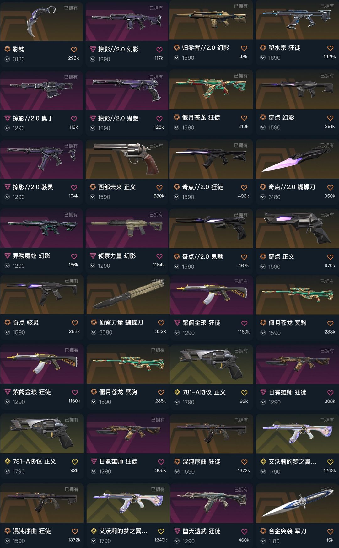 可排精品-影钩掠夺爪刀蝴蝶刀 梦之翼猫猫混沌狮子苍龙弃王紫金奇点塑水宗狂徒 异鳞魔蛇侦查 西部未来