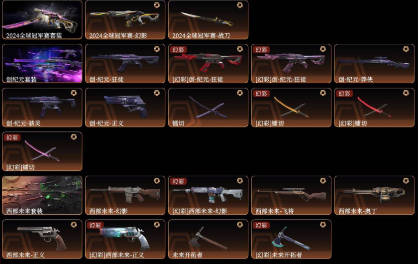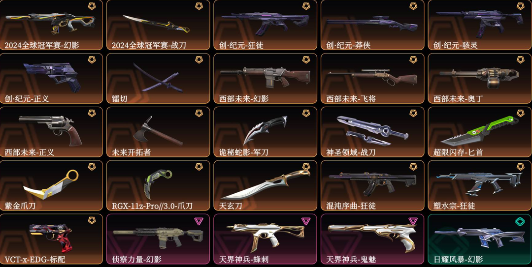 可排位大库存☆2024套☆西部套☆创纪元套☆混沌☆塑水宗☆紫金☆VCT☆RGX☆天界☆侦察☆各种散件