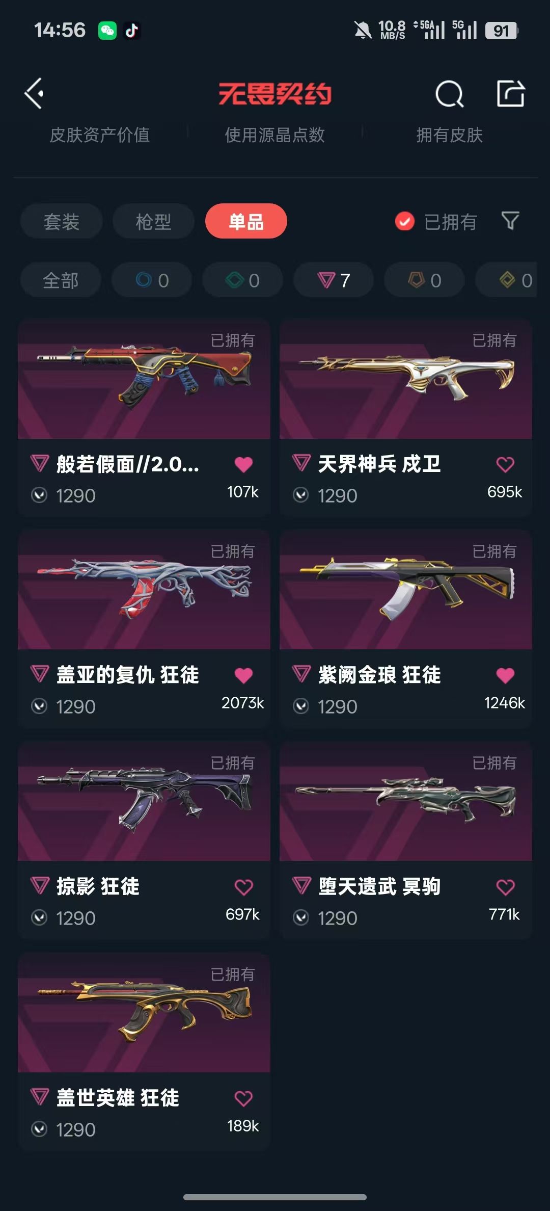 3.3w库冻结重上了可排位诡秘蛇影✅澄湖潋滟✅剥皮刀✅神圣领域✅鬼丸国纲✅归零者✅超限闪存