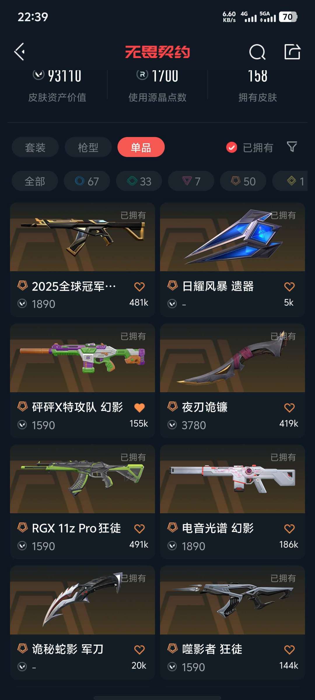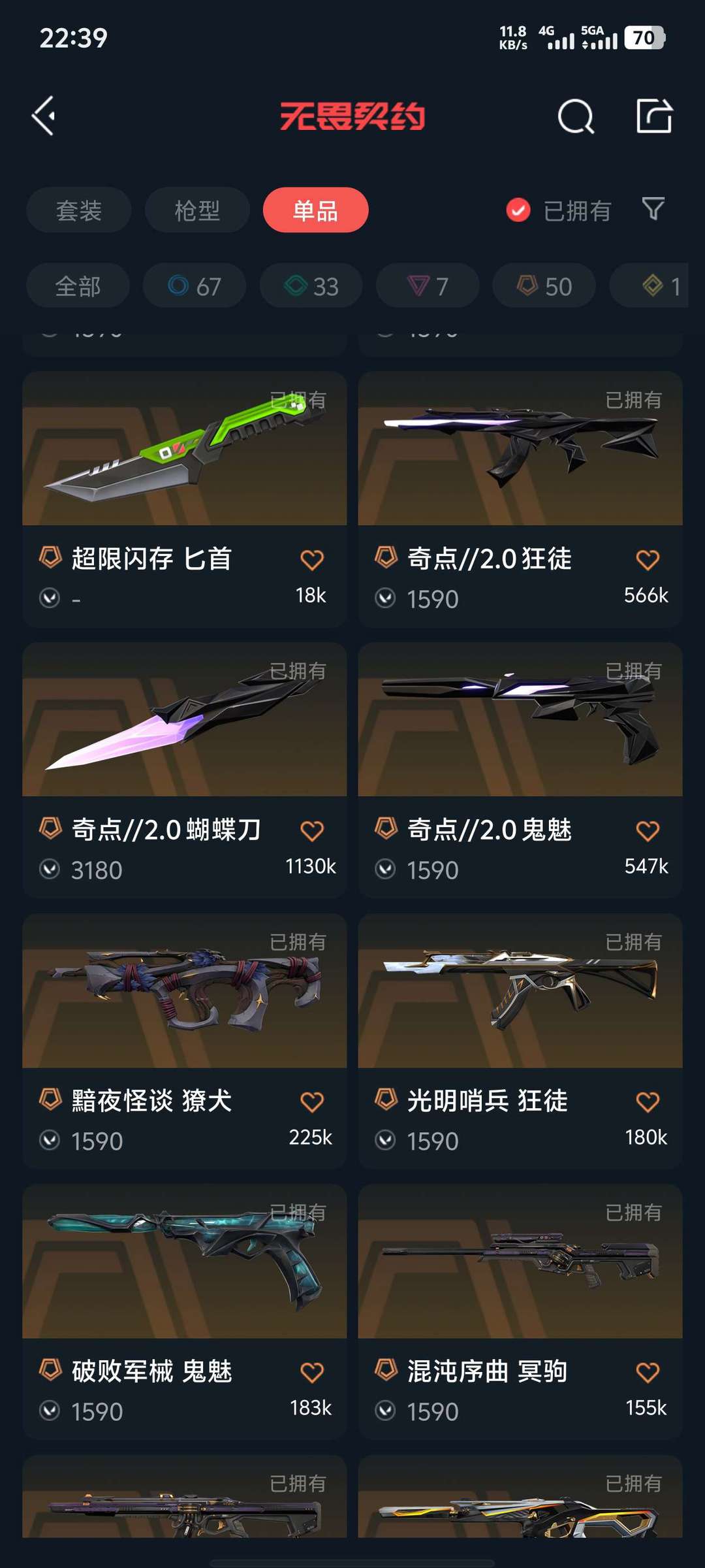 武器皮肤数量:158