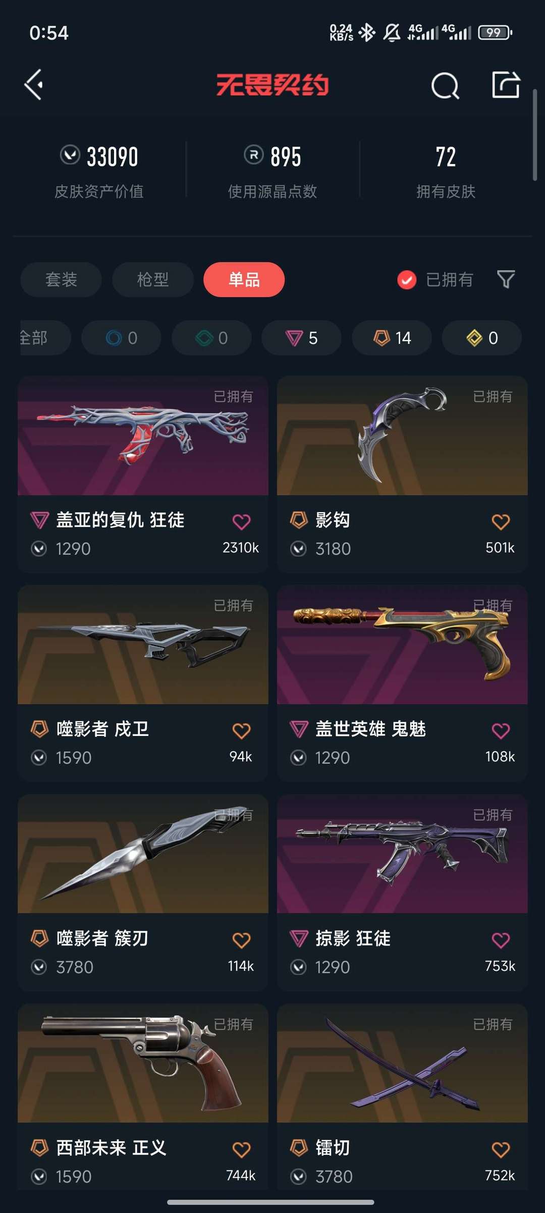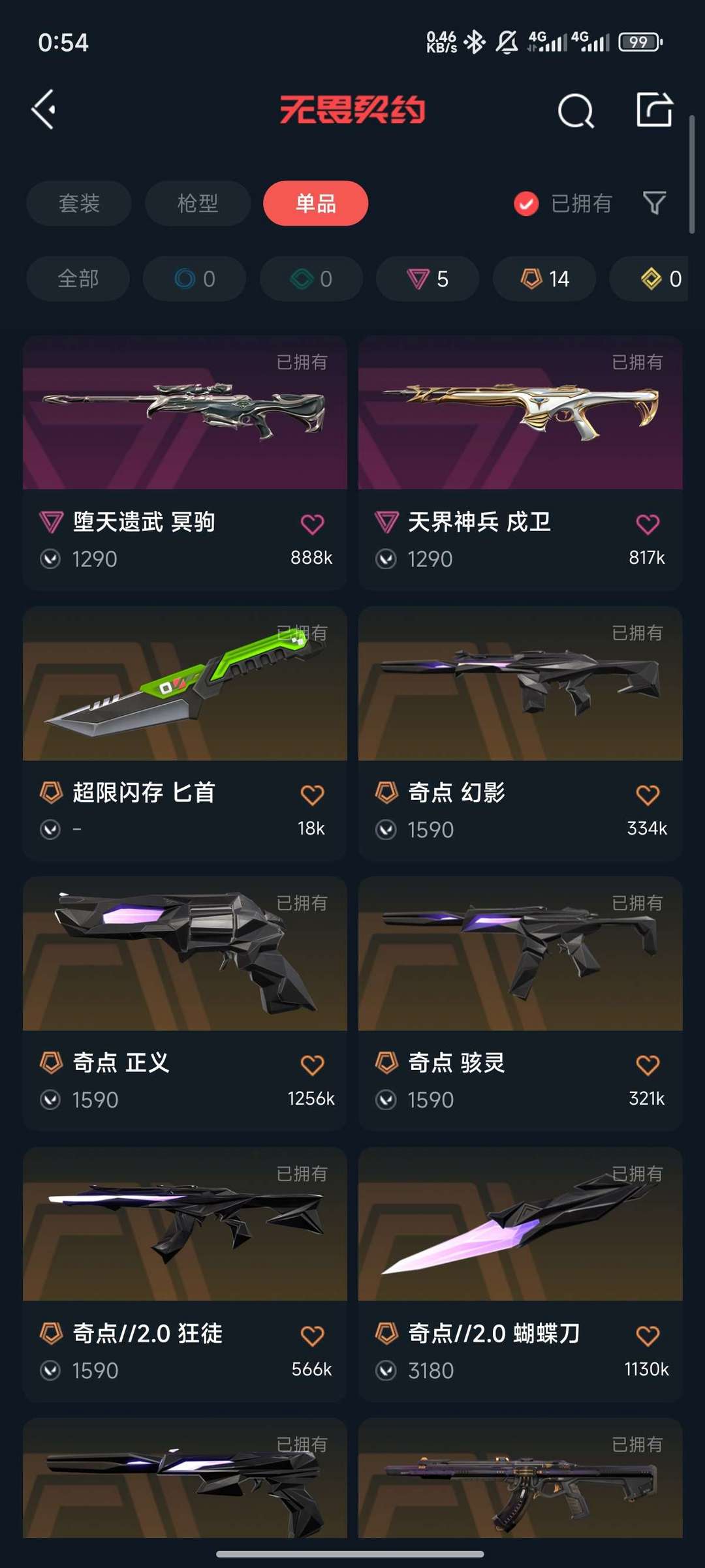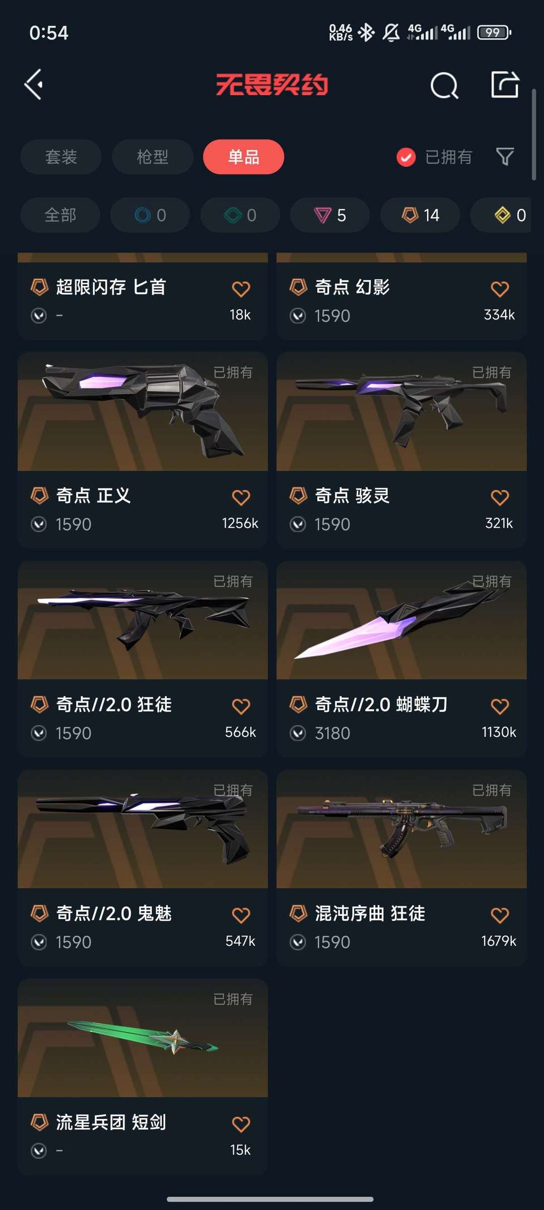 装备描述:混沌★盖亚★掠夺★奇点★堕天★噬影者★西部★堕天★天界★盖世英雄★掠夺爪★蝴蝶刀★反手刀★簇刃★镭切