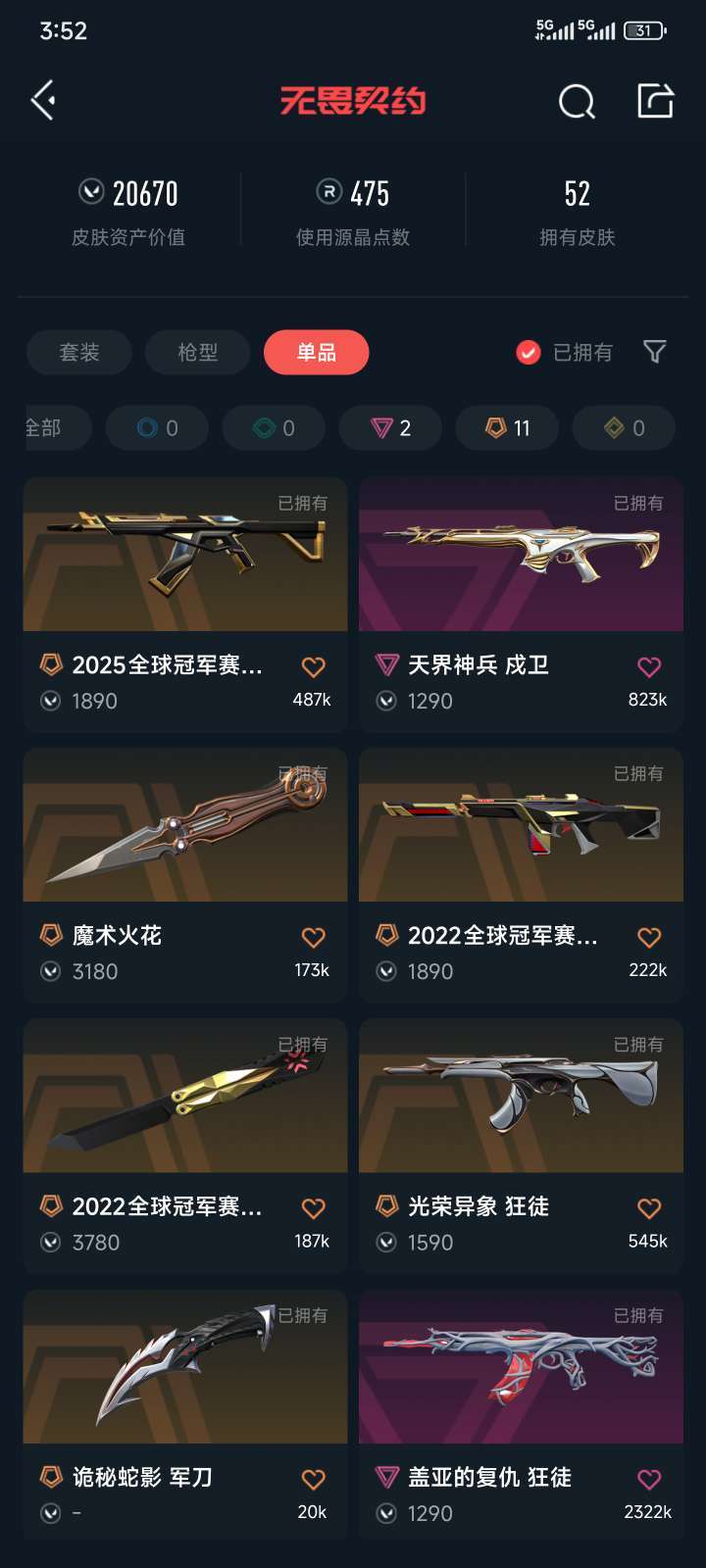 武器皮肤数量:52