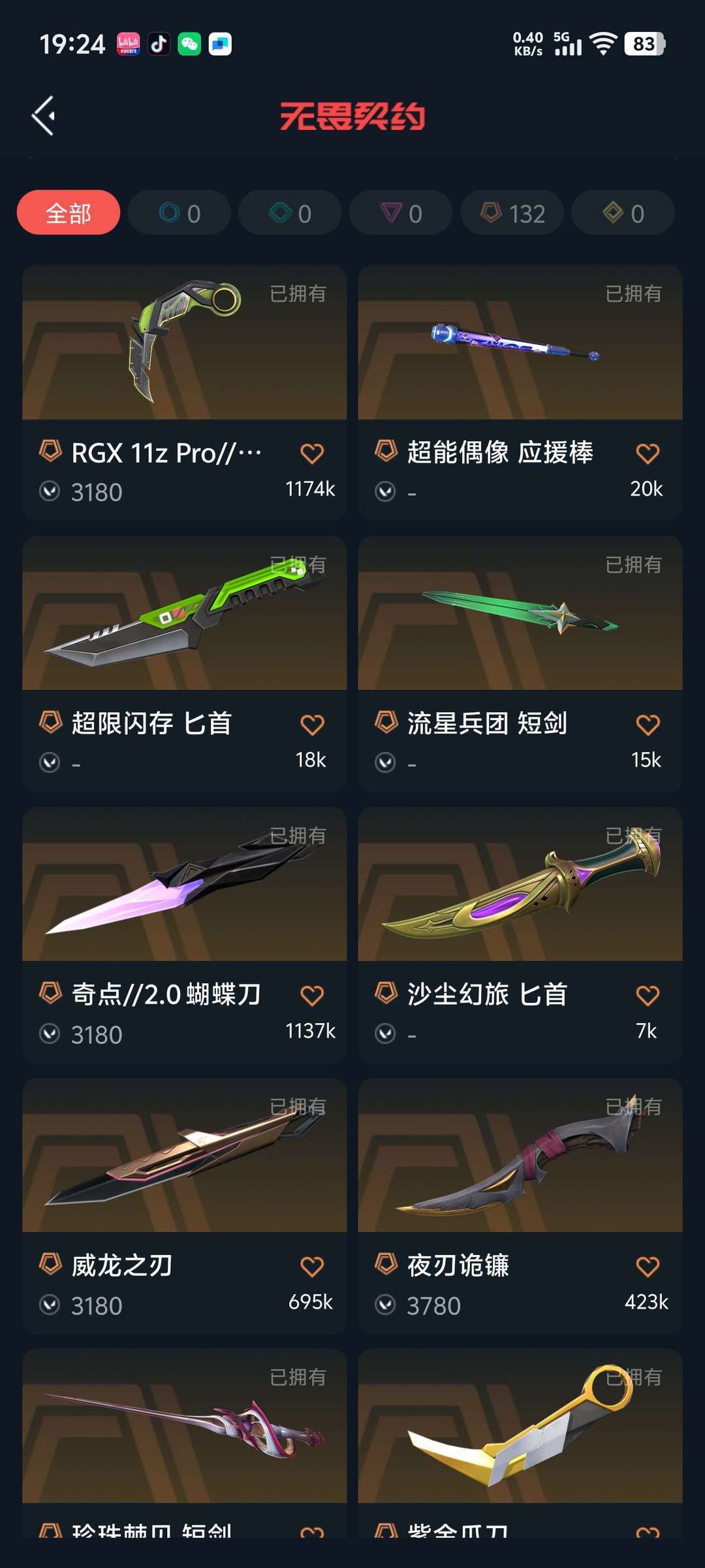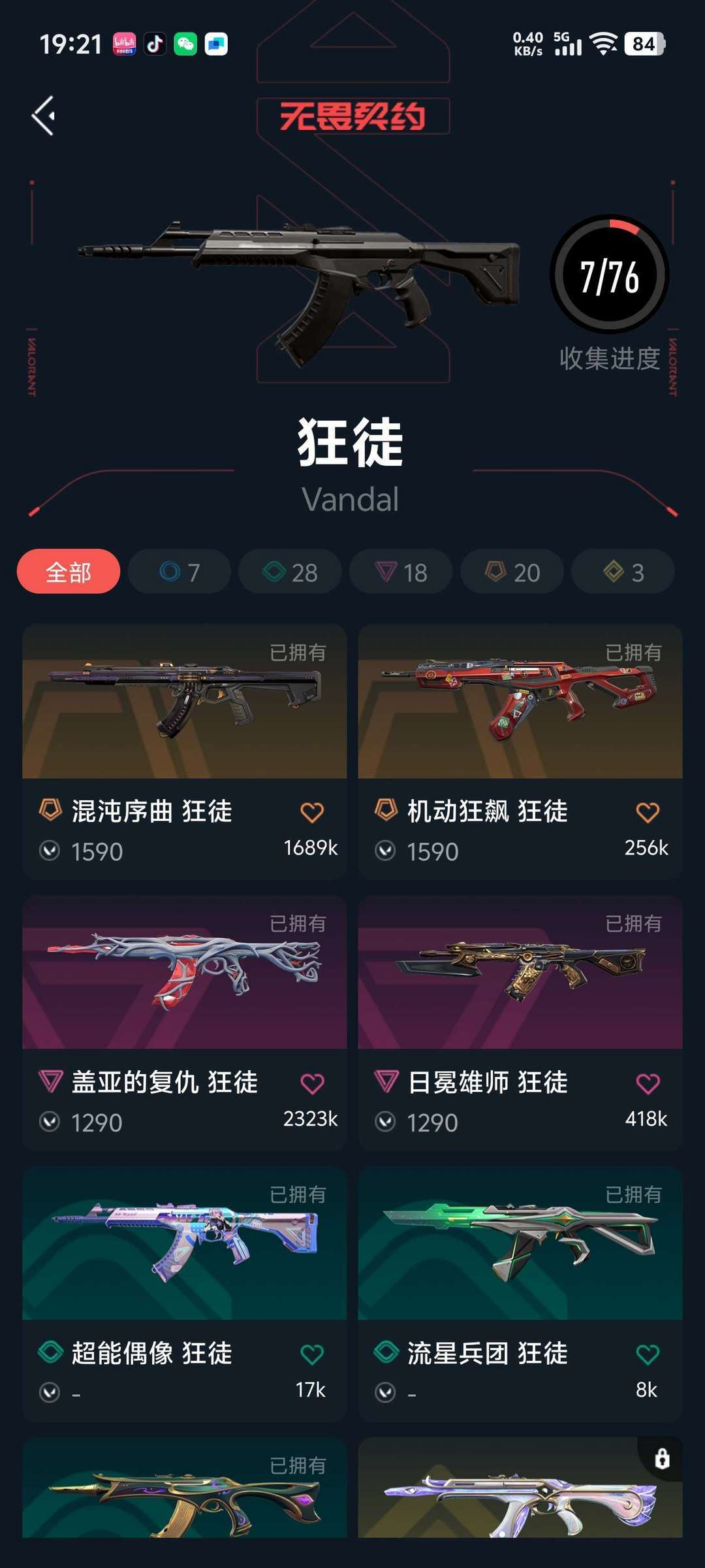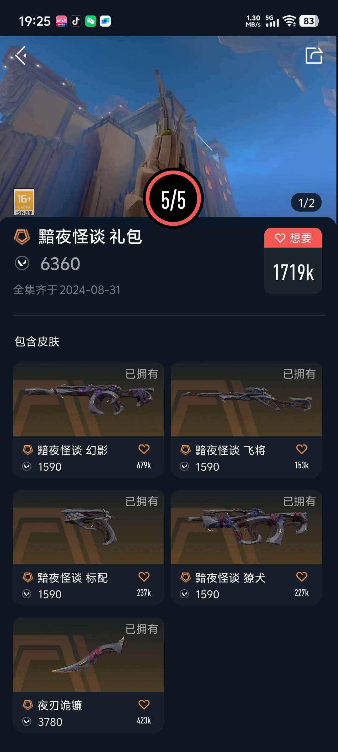 装备描述:狂徒:盖亚 混沌 摩托 狮子 幻影:黯夜怪谈 流脓 刀:显卡爪 奇点蝴蝶 威龙 紫金爪 夜刃诡镰 莲花左轮 哨兵冥驹 黯夜一套