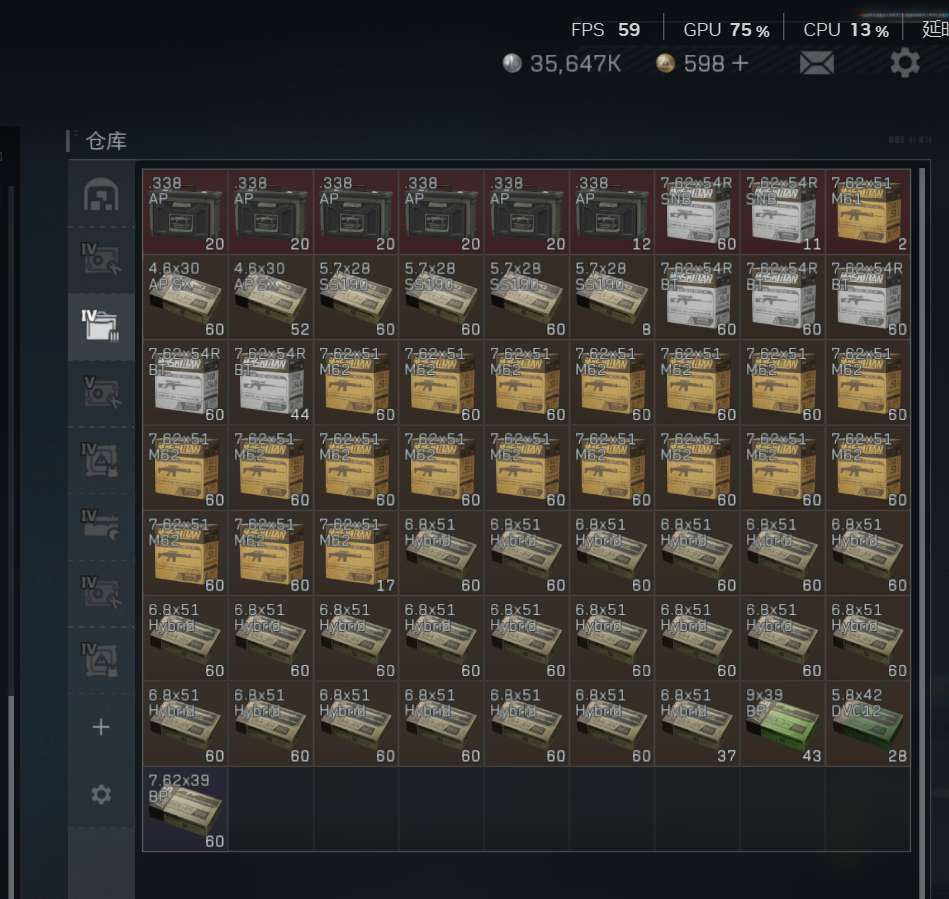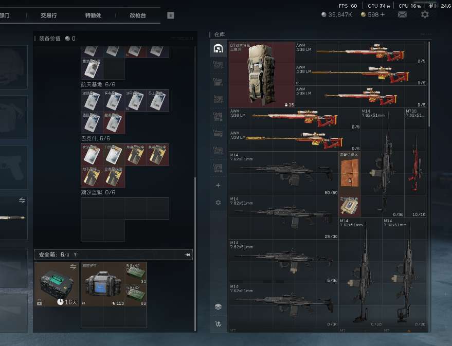 亿级哈夫币 awm子弹110发,六甲十套还在做,仓库还有三千多万资产随便使用,m14子弹,3*3,满体满负重