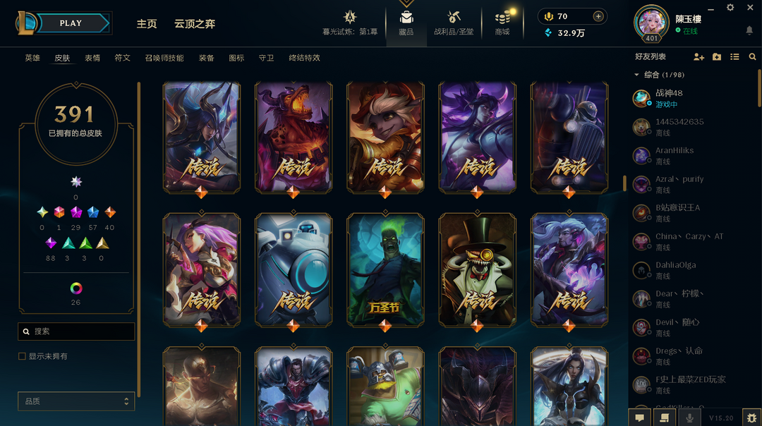 龙瞎泳池男枪瞎子丧尸火男SKT维恩烬醒狮大嘴DJ琴女钢铁军团盖伦万圣节梦魇