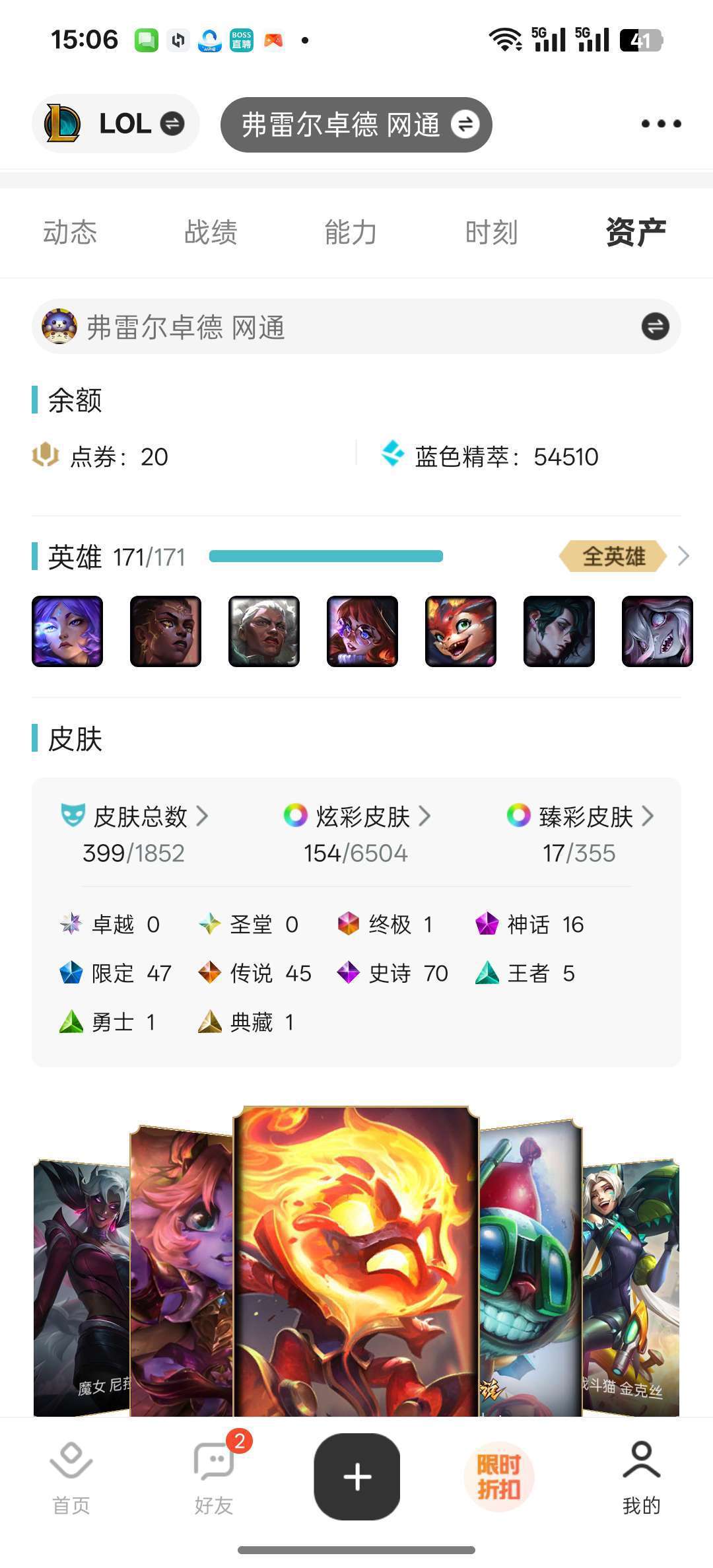 [弗雷尔卓德]✨400原皮154炫彩17臻彩多传说皮,真金白银,排位娱乐皆可