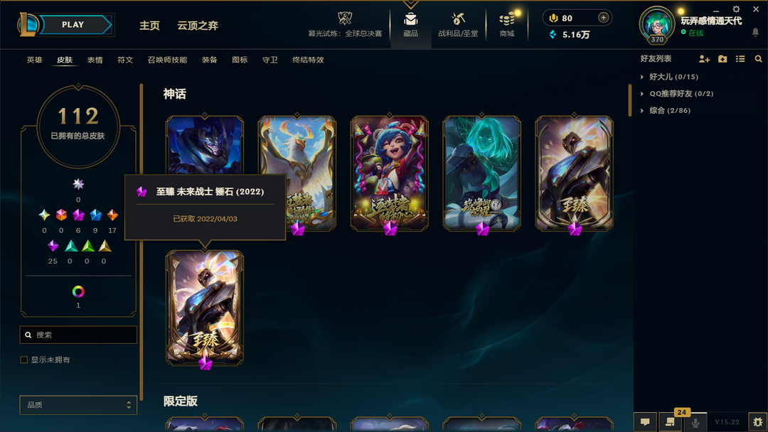 炫彩皮肤:山海绘卷 妮蔻;绝息圣堂 洛;iG 洛;暗星 锤石;女警官 蔚;冲击之刃 劫;源计划:疯狂