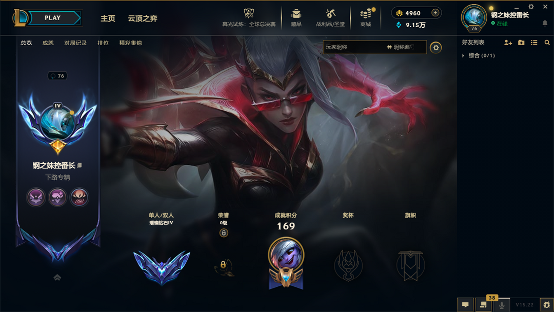 ★【峡谷之巅】钻石可排位★殿堂传奇VN★西部魔影★AD号必排职业主播