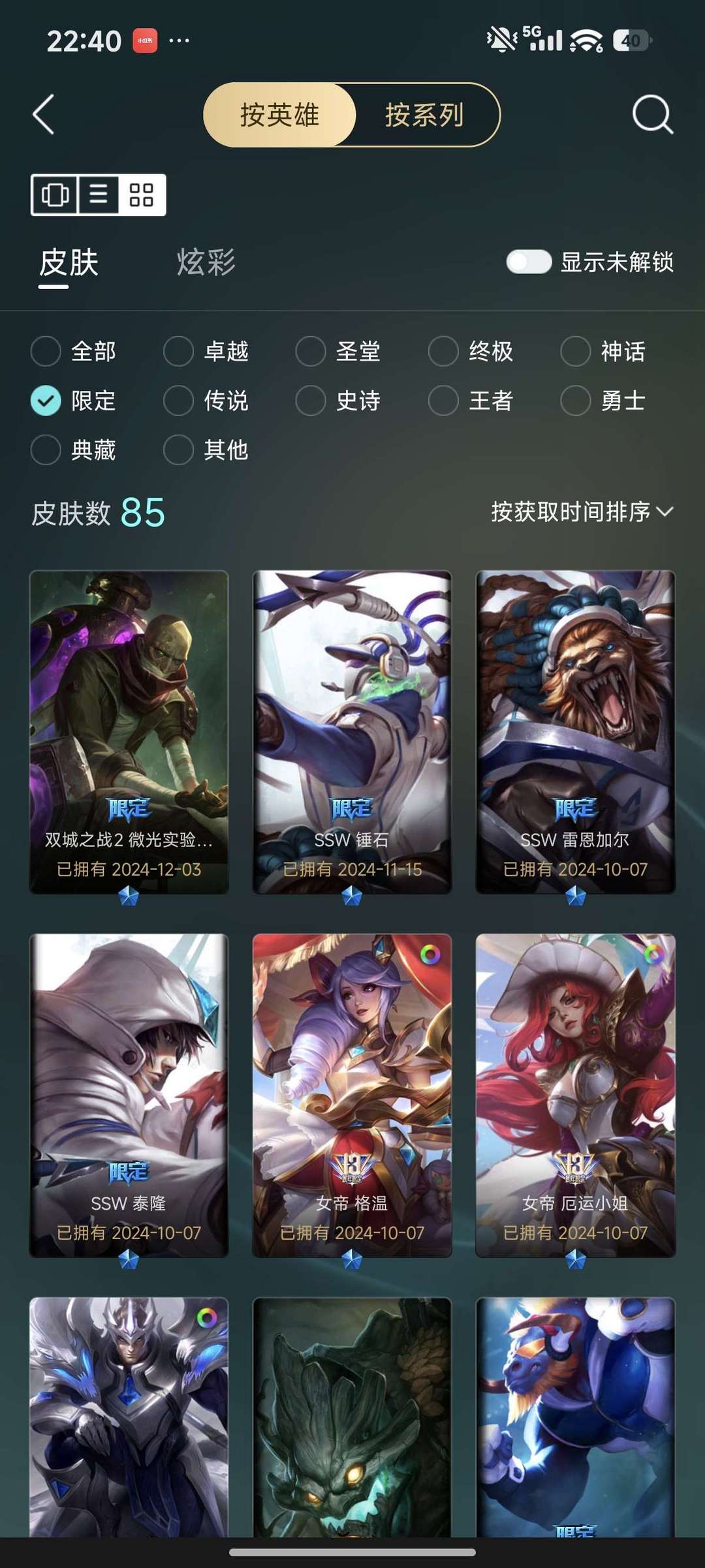 自用号,龙瞎,龙刀,edg冠军全套等等云顶有棋盘,小小英雄