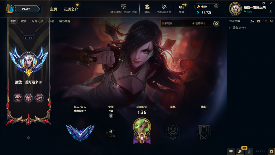 段位:74级 璀璨钻石IV