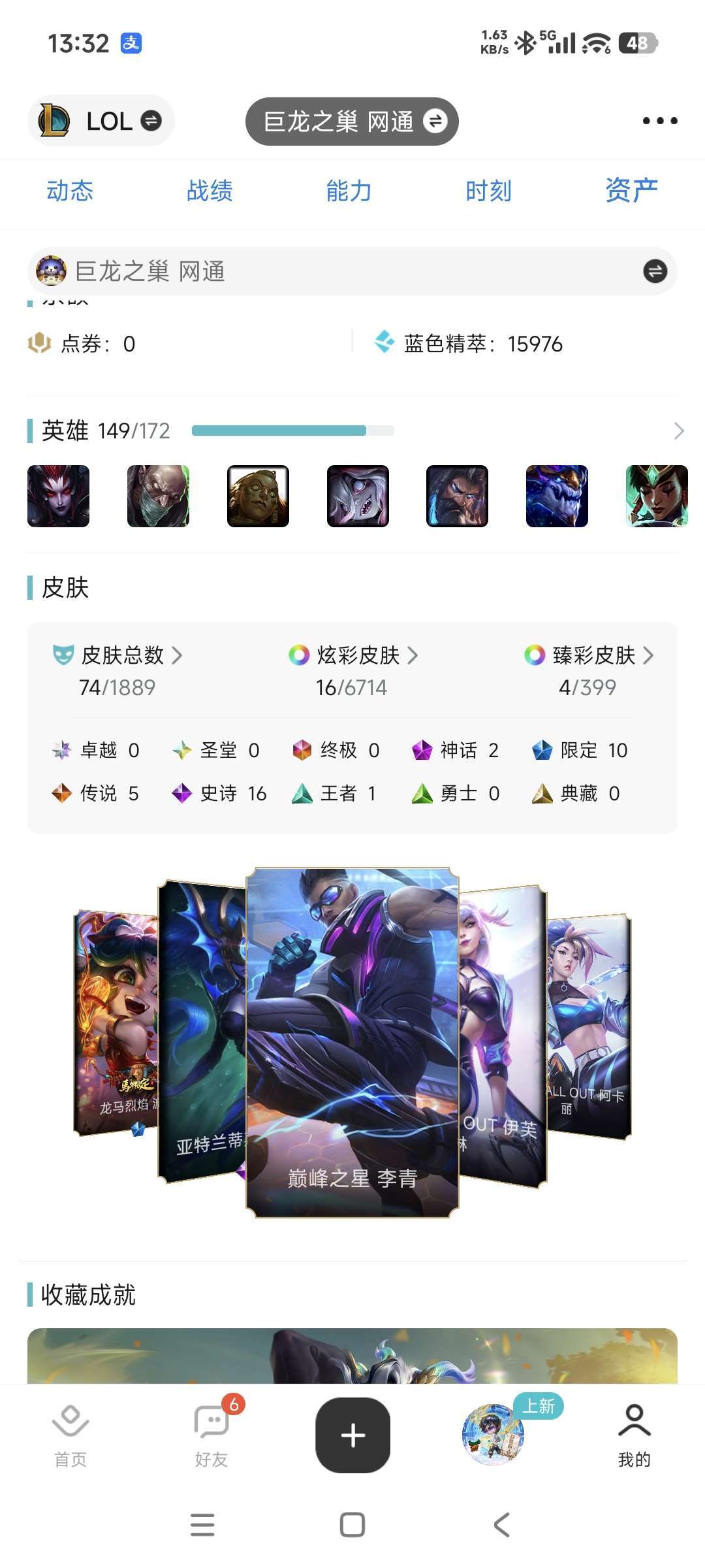 装备描述:就自己娱乐的一个小号,之前70胜率打上钻石后自己掉下来的,后面没咋打排位了