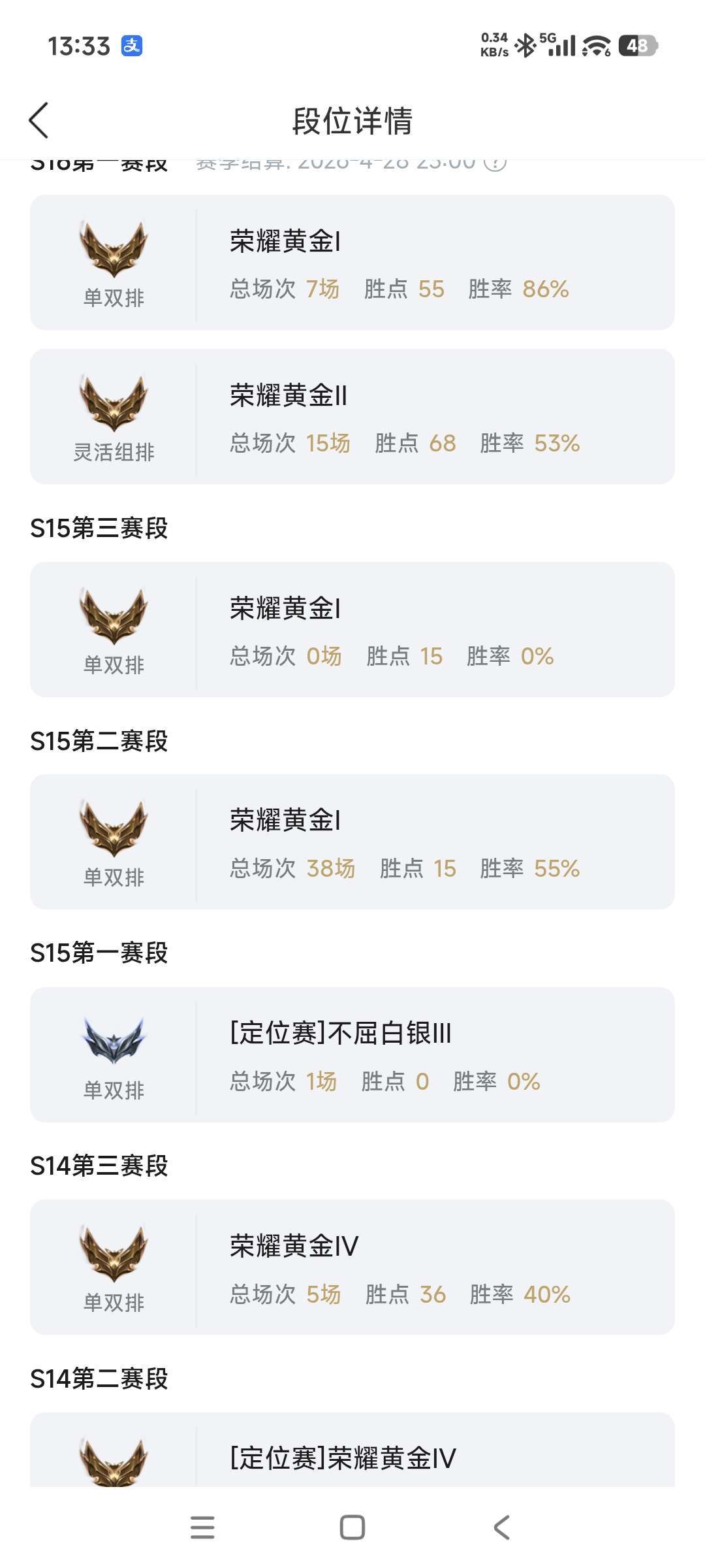 段位:86级 荣耀黄金I