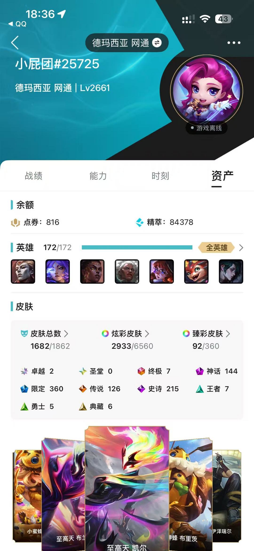 限制: 撤单率<50%才可租用此帐号英雄: 172