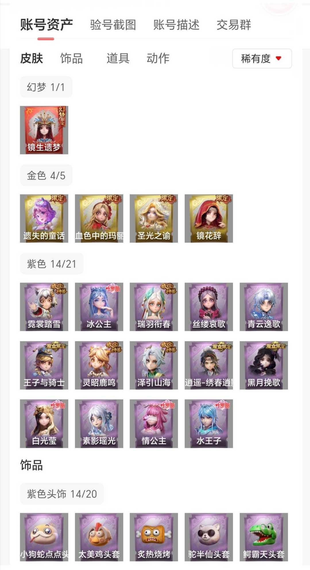 镜生遗梦✨1幻梦4金耀世✨血色中的玛丽✨圣光之谕✨遗失的童话✨故宫神兽全皮肤✨看描述租
