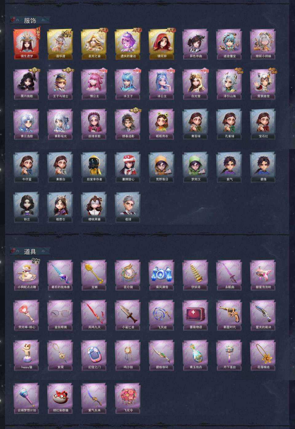 限制: 撤单率<30%才可租用此帐号装备描述:安卓ios均可登录,恶意撤单、用金砖、改id等不文明行为永久拉黑 ✨一单一密保证中途不会挤号,祝游戏愉快~ ⚠️禁止使用外挂、恶意发言、用号行骗等恶意行为,若因此类行为导致禁言、封号的,平台提取租客实名地址、立案追责,根据账号价值全额赔偿。 有内测原始股东头像框和龙傲天头套 1幻梦:镜生遗梦 4金皮:遗失的童话/圣光之谕/镜花辞/莲华渡 1紫皮:泽引山海/霓裳踏雪/情公主/冰公主/白光莹/水王子/除妖小师妹/迷途僵宝/异色序曲/黑月挽歌/王子与骑士/绣春逍影/青云逸歌/素影瑶光/丝缕哀歌/呱呱雨衣