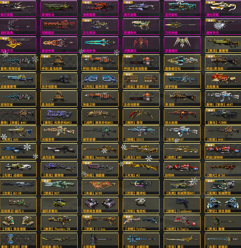 诞●双黯四件套五特典狙加特林黯火黯影●金兔龙神威次元恶魔天使雷魔神●重铸怀旧套光束闪电维京套暗影暗火