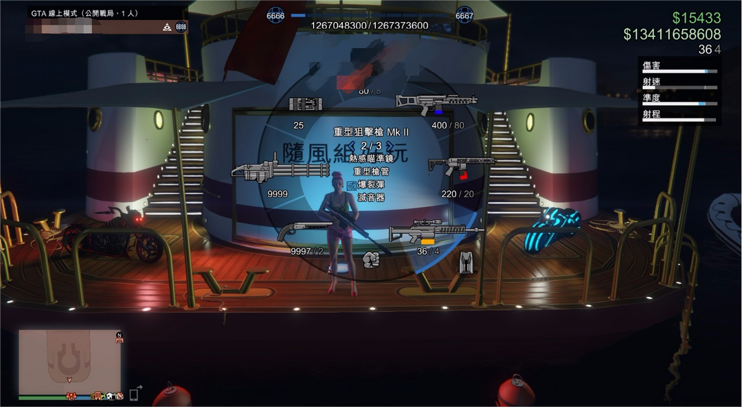 装备描述:千级神豪⚡GTA线上50亿⚡地堡全解锁⚡任务全部解锁⚡虎鲸航空母舰