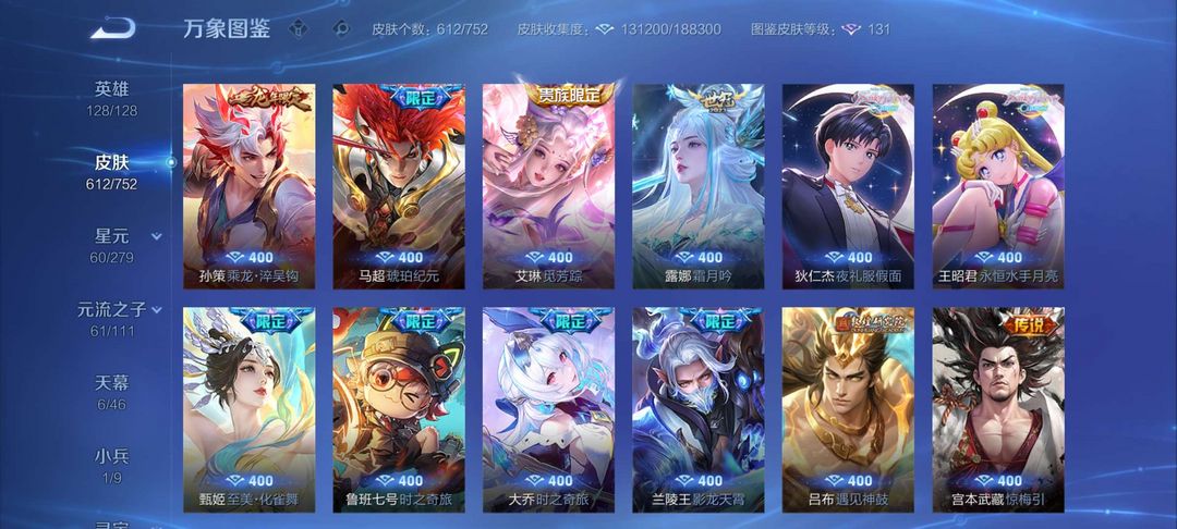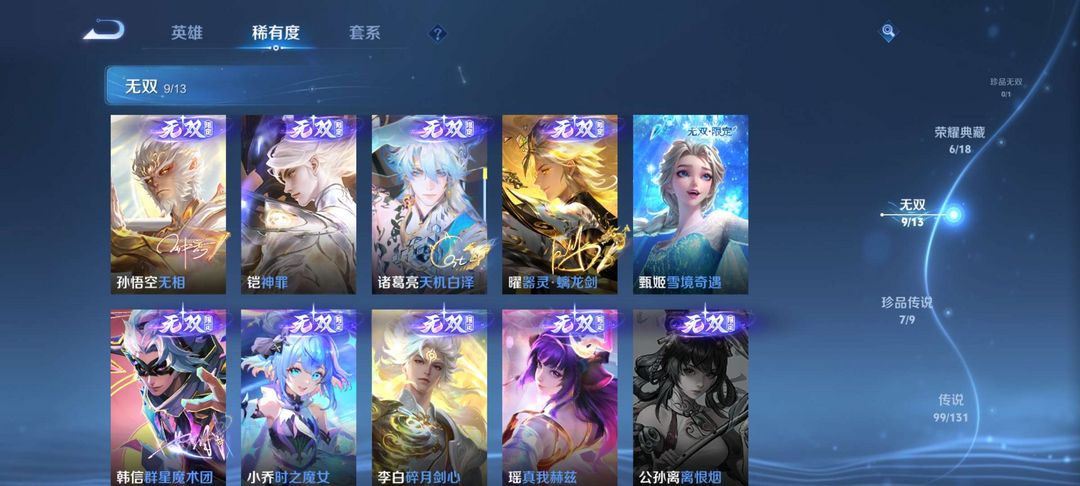 无双v10 女号 猴子无相*天机白泽*神罪*大耳狗*瑶无双*蛇年限定*雪镜奇遇*至尊宝*小兵*天幕