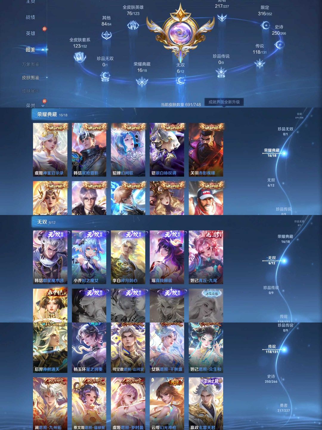 不禁言 十七个典藏 韩信无双魔术团神鉴启示录✨满传说皮肤19星传说90按键16天幕