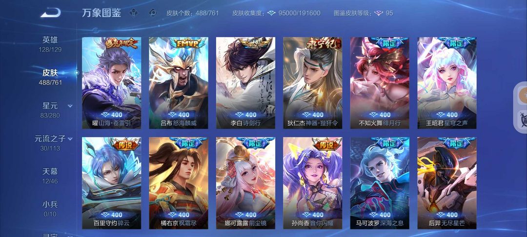 V10不禁言❤女号488皮肤8水晶1无双6星元65传说号❤幻阙歌赤影疾锋九霄神辉❤12传说天幕