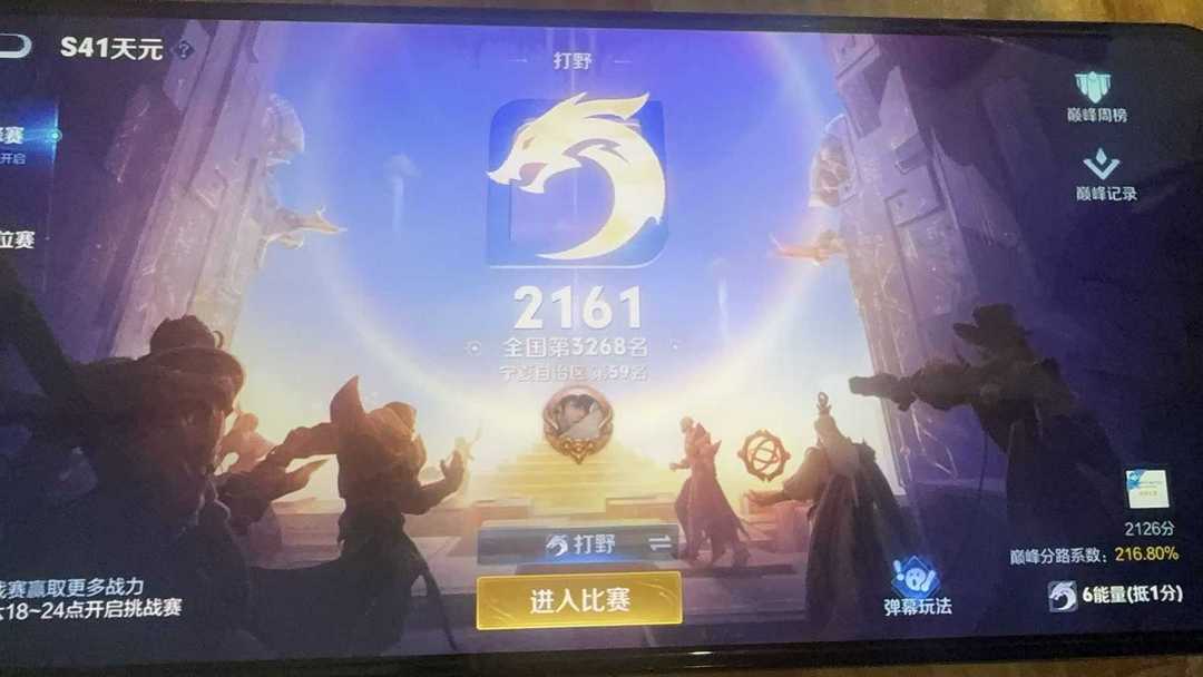 不能打巅峰赛⚡打野巅峰万强2161没闪电框,省10猴子韩信澜裴擒虎⚡66段打野禁巅峰,没拿到闪电框