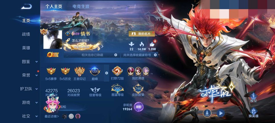 荣耀v10不禁言❤746皮历史百强打野72段历史5国服貂蝉老虎1.9露娜❤凯无双-神罪❤8小兵