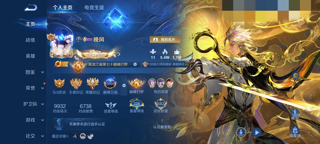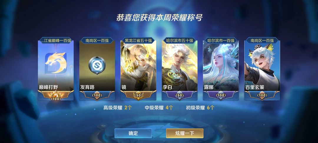 在榜省金标镜❤️巅峰万强❤️禁开巅峰❤️荣耀v10不禁言683皮❤️历史6国服镜李白露娜火舞艾琳❤️