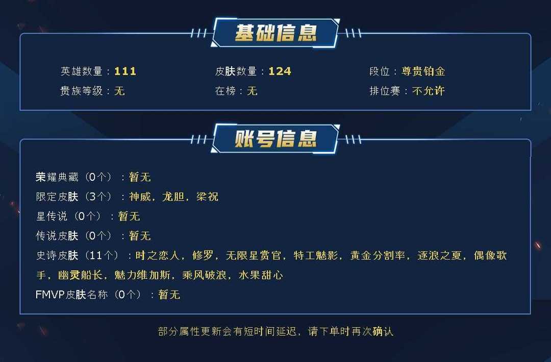 装备描述:>>>>>>毁号,涉及毁坏虚拟财产罪及计算机安全罪,请文明游戏素质游戏,让我们共建美好租号平台>>>>>> 本游戏账号: ,基础段位:永恒钻石III,英雄多,皮肤多。典藏皮肤1个,感受典藏皮肤带来的优质体验快感,FMVP皮肤1个,尽情享受FMVP皮肤带来的主角光环, 私人所属英雄皮肤有:夏侯惇 无限飓风号达摩 黄金狮子座||诸葛亮 时雨天司||孙悟空 地狱火花木兰 冠军飞将桑启 海盐诗旅||白起 夜都怪侠||雅典娜 黎明之约||达摩 沙漠行僧||太乙真人 华丽摇滚||庄周 高山流水||杨玉环 遇见飞天||艾琳 女武神||鲁班大师 乓乓大师||墨子 神迹守卫||米莱狄 胡桃异想国||元歌 云间偶戏||狄仁杰 魔术师||亚瑟 潮玩骑士王||裴擒虎 李小龙||蔡文姬 繁星吟游||阿轲 迷踪丽影||刘邦 夺宝奇兵||明世隐 疑决卦||李元芳 银河之约||上官婉儿 梁祝||嬴政 白昼王子||吕布 猎兽之王||米莱狄 御霄||赵云 皇家上将||韩信 逐梦之影||项羽 海滩派对||甄姬 游园惊梦||狄仁杰 阴阳师||钟无艳 王者之锤||孙膑 妖精王,等等 注意事项: A.游戏过程中请不要恶意挂机或者