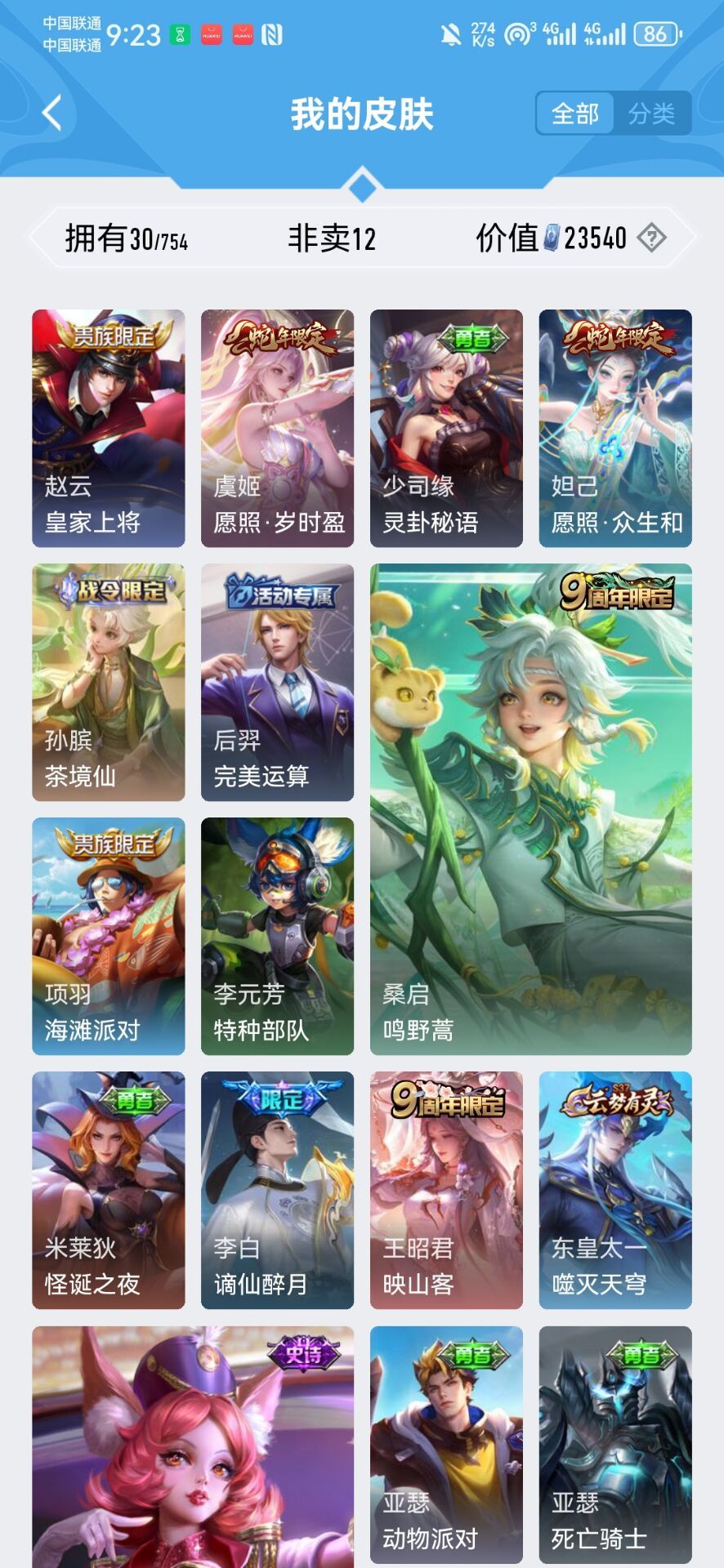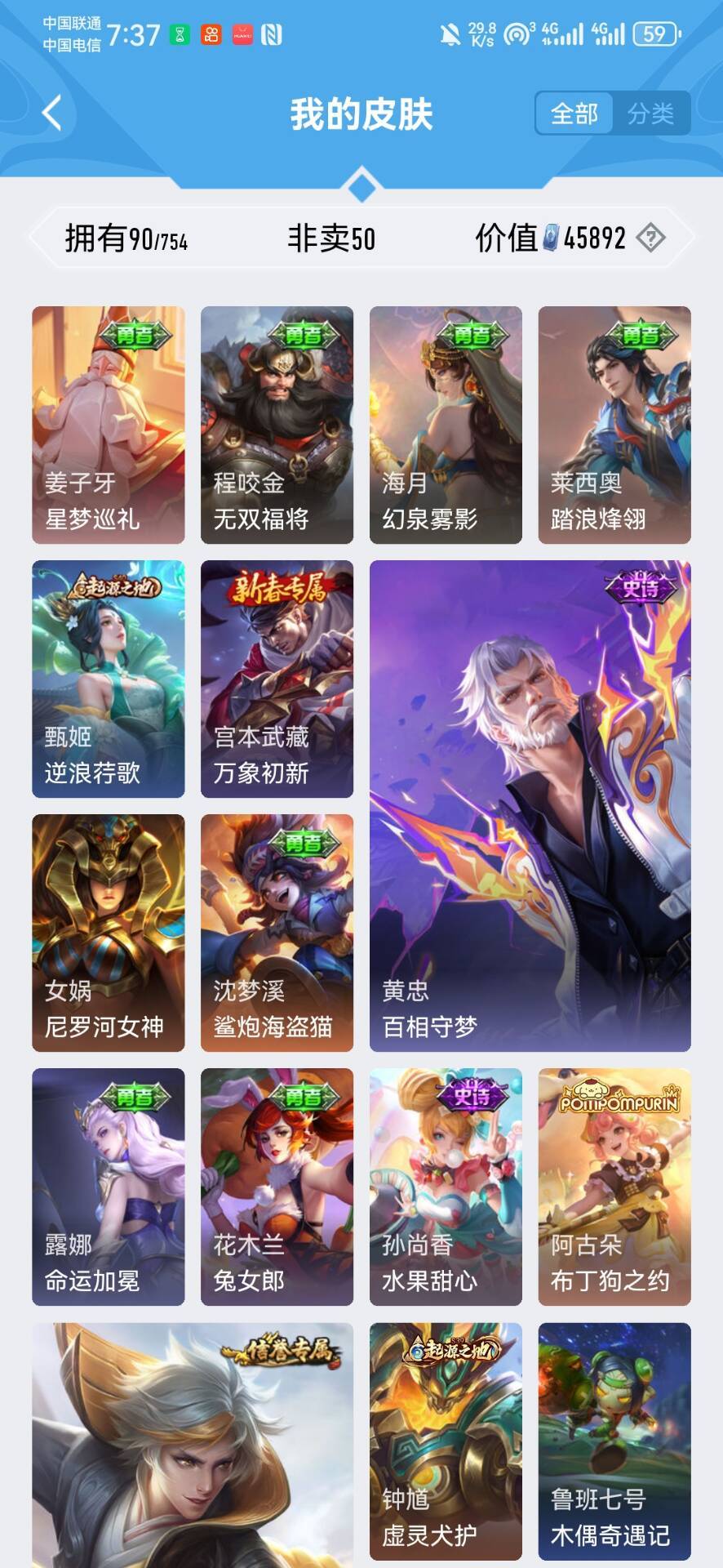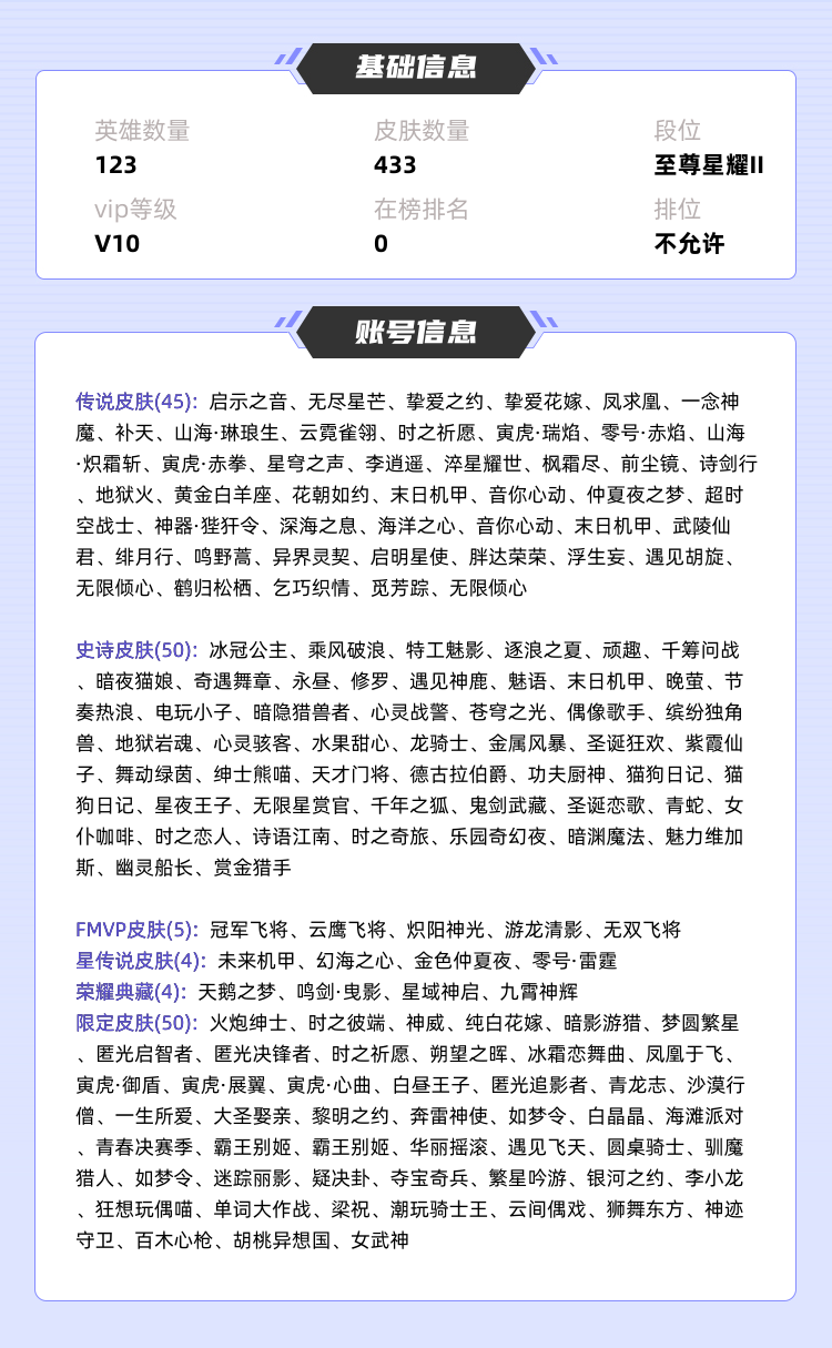 回归小号50皮可排位⚡️布丁狗之约⚡️妲己蛇年限定⚡️李白谪仙⚡️五排专属⚡️